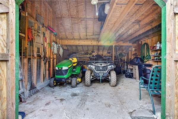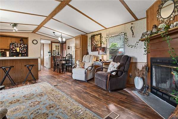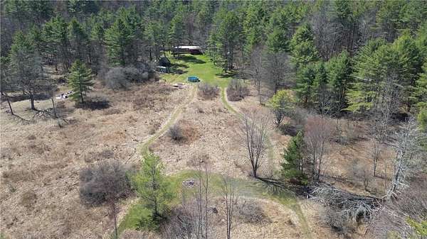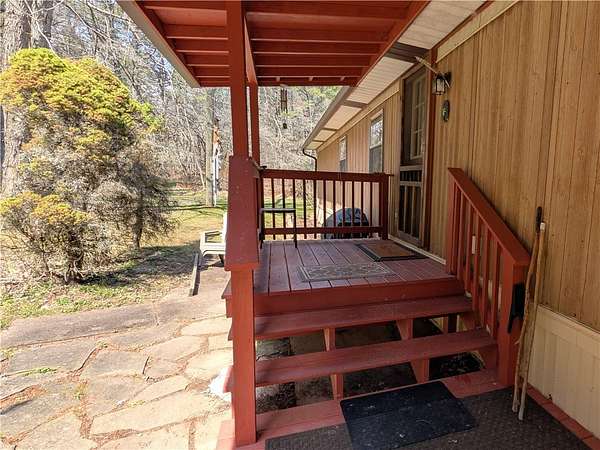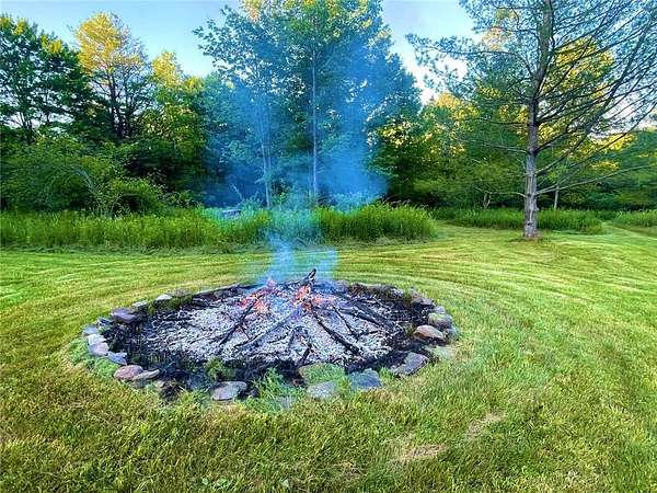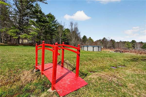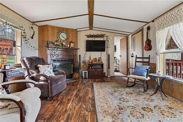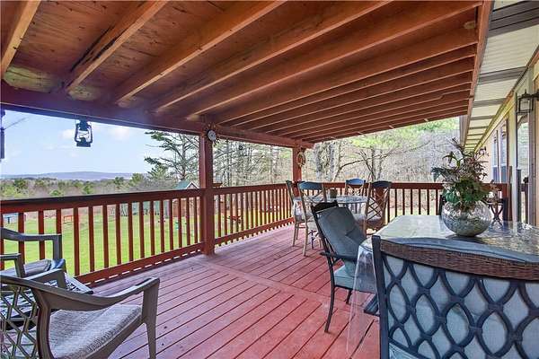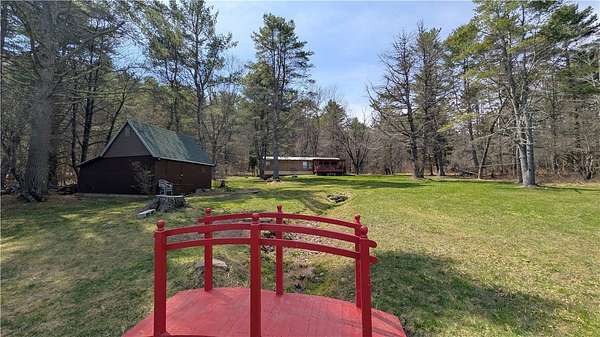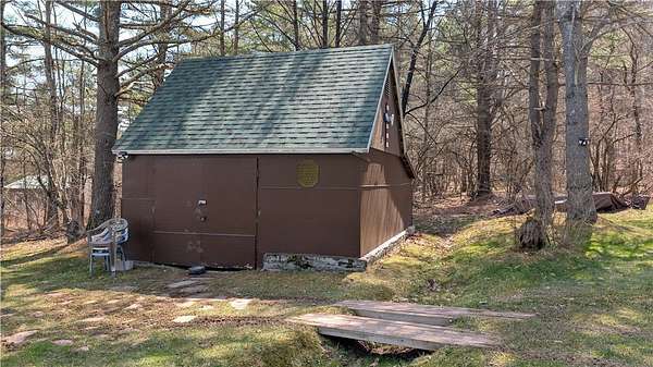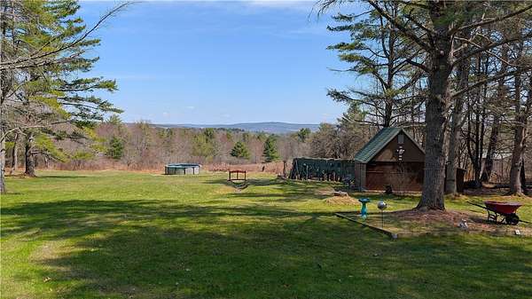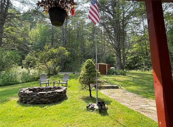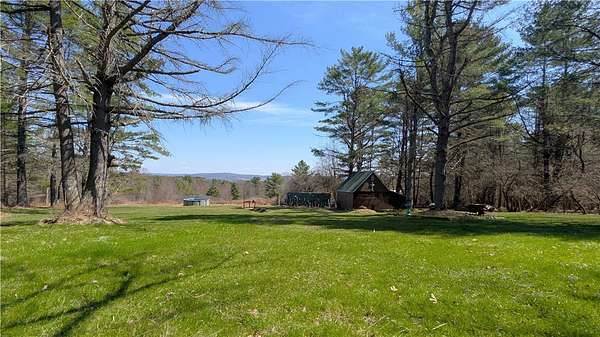 This property is basically the ultimate cozy getaway - comprised of a tastefully updated 1990 manufactured home, covered front and back decks, large storage shed/barn, ample lawn space, trails into the back meadow and on into the pristine woods - it really packs many desirable features in one 4 acre parcel on a quiet, private road. Entering from the roadside, a fresh gravel parking area leads to a bluestone walkway, past the fire pit, and into the covered front entry deck. Inside, a spacious living room with wood burning fireplace and new laminate flooring is open to the kitchen and dining areas. A hallway with laundry nook and full bath with updated vanity then leads to the larger bedroom. The opposite end of the home has a second bedroom with mini-bay window looking out to the small side patio. Exit the living room to the huge covered back deck, which faces easterly with stunning distant views over the meadow and woods behind the home. A super well manicured lawn includes recent drainage work to manage natural moisture, areas for gardening and recreation, and even has an above ground pool. The shed is spacious for a workshop or storage for lawn equipment and toys. A trail system leads back through a delightful meadow and into some woods, passing a seasonal stream towards a rustic campsite near the back of the property. Systems updates include new 200 amp service to the pole (100 amp to the house), new water heater and pressure tank, exterior skirting and gutters, septic leach lines, and shed roof. There is so much to consider here, it has all the vibes! All just minutes from the village of Franklin, 20 minutes to Oneonta (and All Star Village), under 10 minutes to I-88 access, and 2:45 to metro NY.