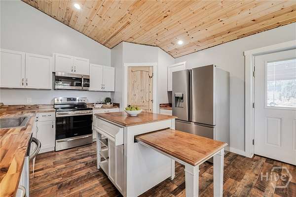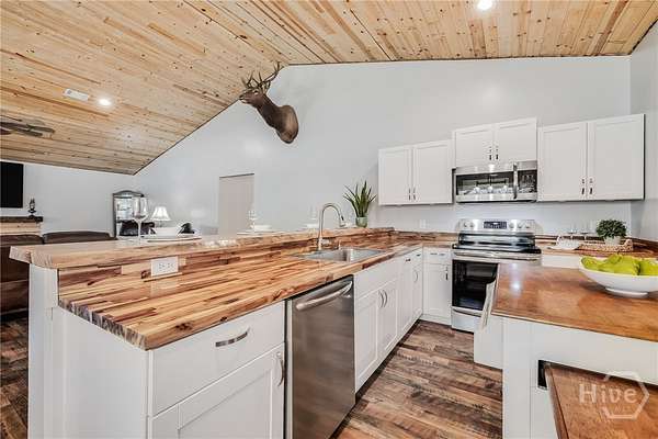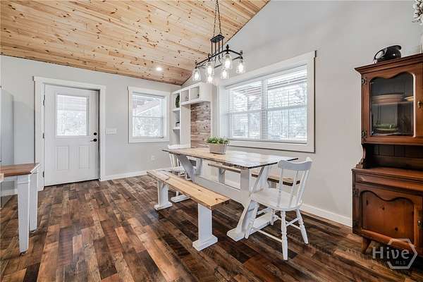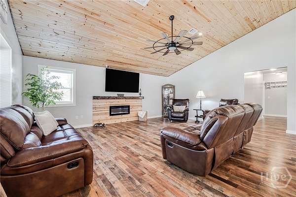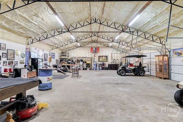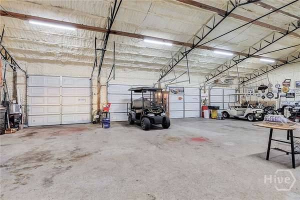 Move-in ready custom home on nearly 2 acres with NO HOA, located in the desirable South Effingham school district! Built in 2022, this beautiful 3-bedroom, 2 bath home offers approximately 2,000 sq ft of modern living with high-end finishes throughout. Features include gorgeous hardwood floors, stunning tongue-and-groove ceilings, and a spacious living room with a cozy fireplace. The open eat-in kitchen boasts butcher block countertops, a walk-in pantry, and plenty of room for gathering. The oversized primary suite features a large walk-in closet and a spa-like en suite bath with double vanities, separate shower, and a relaxing soaking tub. Two additional bedrooms offer generous space and large closets, with comfortable carpet flooring. Separate laundry room for added convenience. Enjoy outdoor living with an above-ground pool, deck, and shaded area perfect for entertaining or relaxing. Property also includes a 50-amp camper hookup and an impressive 36x50 fully insulated 4-bay workshop with electricity - ideal for hobbies, storage, or business use. Peaceful country setting with modern comforts - a rare find!