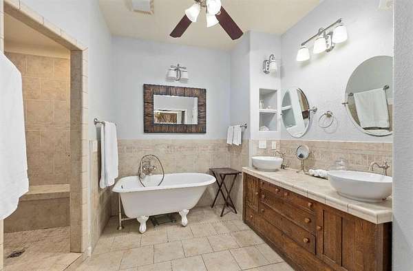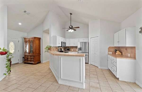 Country living in the heart of town! One of a kind beautiful 4 bedroom,3 bath home on 3.32 acres is sure to please. There is a gated entrance and beautiful drive to the home with towering trees and over 20 producing pecan and fruit trees. The first floor has vaulted ceilings and features two bedrooms, two bathrooms, open concept kitchen and a living area with a cozy fireplace. The primary bedroom has a bonus area that would make a great office or workout spot. The en-suite bath has double sinks, tiled walk in shower and claw foot tub. The grand stairs lead to the basement where you will find an additional two bedrooms, game room-living area with bar and a full bath. There is an incredible storage area offered in the basement as well! The view from the large covered back porch is picturesque and is the perfect place to watch the wildlife and drink your morning cup of coffee. Oversized two car garage plus covered parking for four additional vehicles. HUGE laundry room, metal roof, a pen for chickens and a place for a large garden. Indian Creek boarders the property making this the perfect place to go exploring! Minutes to schools, shopping and dining. Call for a showing today!