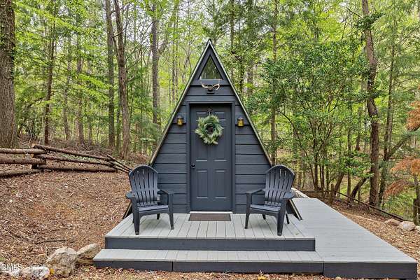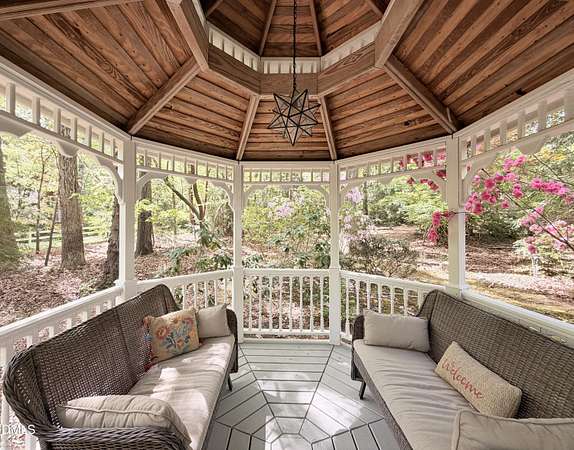 Welcome to your own private 4.83-acre sanctuary in Fuquay-Varina! This stunning, fully upgraded custom ranch offers the ultimate blend of luxury living and outdoor adventure. Step through the brand-new custom entry door to discover beautifully refinished hardwood floors and a fresh, modern aesthetic, with both the interior and exterior freshly painted in 2024. The heart of the home is a breathtaking new custom kitchen, meticulously designed with a premium Wolf range, a beautiful center island, and designer lighting. Relax and unwind in the separate primary suite, which boasts custom closets and a brand-new luxury bath. Every secondary bedroom offers generous space and comfort, while the attached two-car garage has been thoughtfully converted into an expansive bonus room. Entertaining is a dream in the spectacular vaulted sunroom, bridging the gap between indoor comfort and outdoor beauty. Step outside to experience a true nature lover's paradise. Explore your own private network of nature trails, enjoy your newly built A-Frame, take in the views from the overlook with its brand-new deck, or host unforgettable dinners by the outdoor fireplace. A picturesque gazebo and a fully wired detached garage/workshop complete this extraordinary property. Seeing truly is believing--schedule your private tour of this remarkable retreat today!