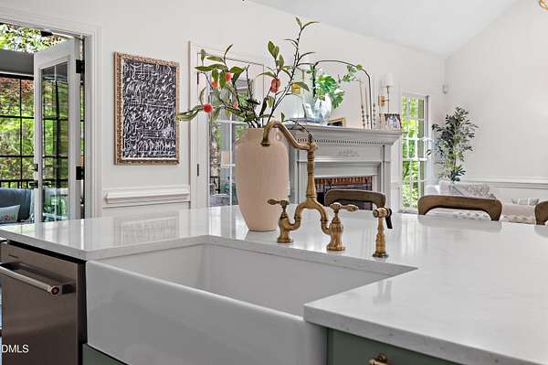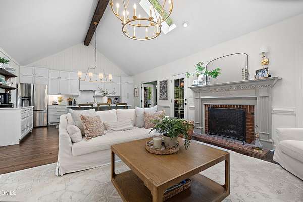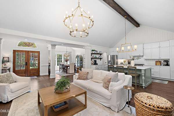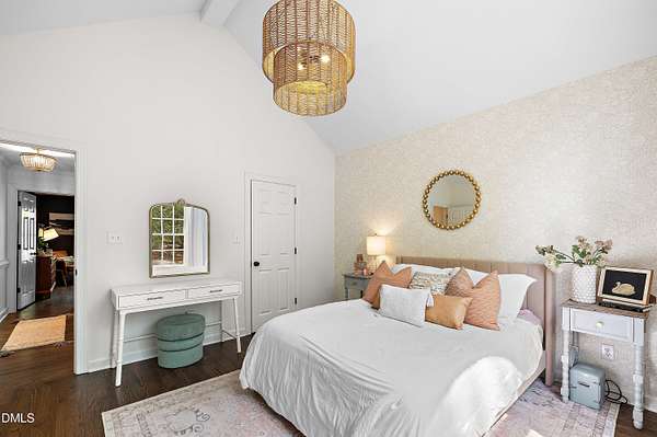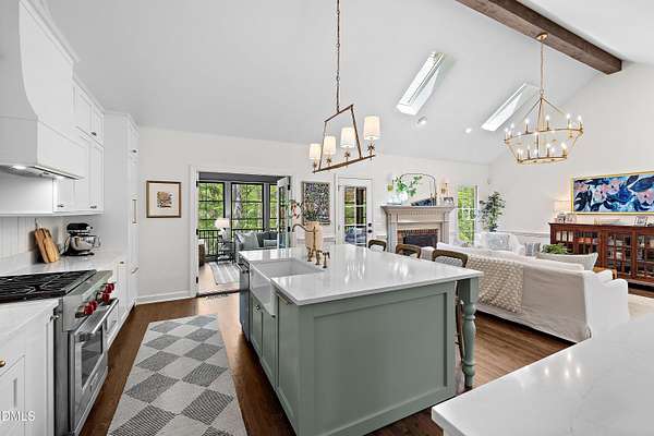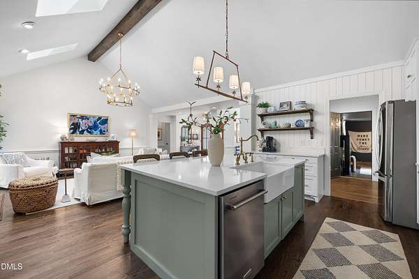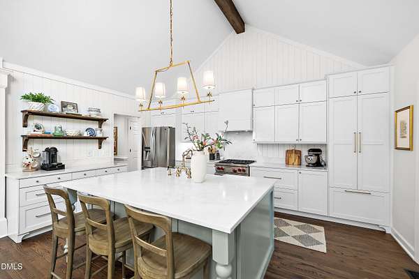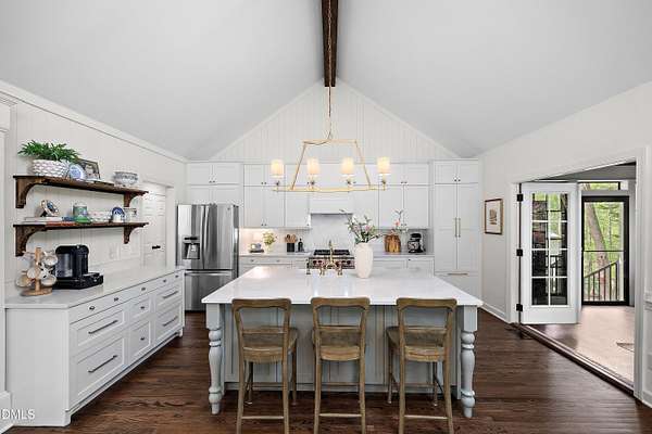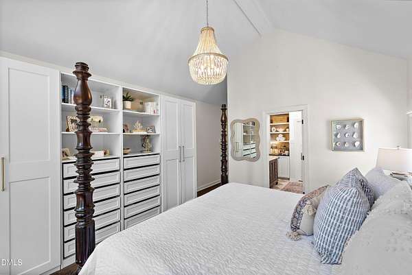 - Beamed Ceilings, Built-In Features, Kitchen Island, Primary Downstairs, Quartz Counters, Vaulted Ceiling(s), Walk-In Closet(s), Walk-In Shower