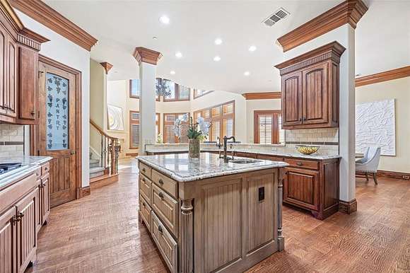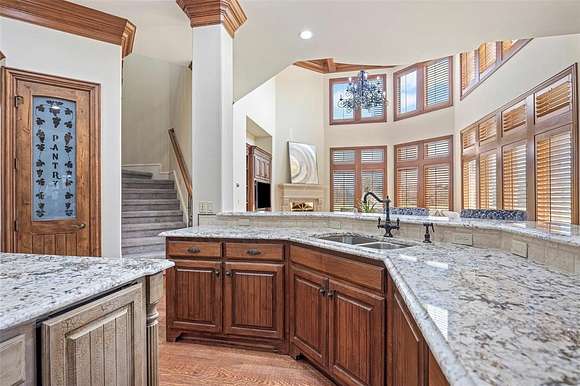 - Built-In Features, Cable TV Available, Cathedral Ceiling(s), Central Vacuum, Chandelier, Decorative Lighting, Double Vanity, Granite Counters, High Speed Internet Available, Kitchen Island, Multiple Staircases, Natural Woodwork, Pantry, Tile Counters, Vaulted Ceiling(s), Walk-In Closet(s), Wet Bar