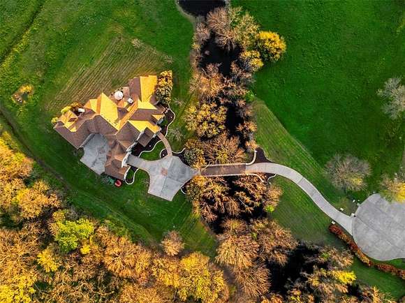 When location means everything this prestigious estate in The Bluffs of Dublin Creek says it all. The brick lined driveway awaits your journey home over the majestic stone bridge and into your private motor court. Warm wood floors, gorgeous millwork and three fireplaces welcome you home. This custom built Brunswick manor is appointed with modern features and appliances set in a traditional style home. The primary suite plus full guest suite are on level one with three additional bedrooms located upstairs. Laundry rooms are located on both levels of the home for convenience as well as an oversized game room, media room and bonus space upstairs. A total of 16.2 extraordinary acres is lined by trees and highlighted by gorgeous ponds that attract birds and wildlife. Enjoy breathtaking panoramic views year round in this incredible Parker, Texas masterpiece surrounded about gorgeous estates and easy access to nearby Plano ISD schools, commuting routes and more. Roof replaced in 2025!