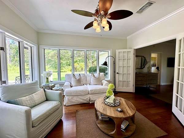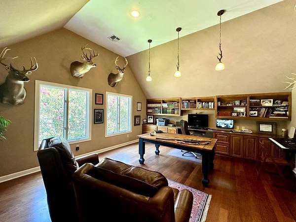 This magnificent Tudor-style home is nestled on 6.8 wooded acres, offering a peaceful country feel right in the heart of McComb's most desirable neighborhood. Located at the end of a winding private drive, this property boasts quiet surroundings, well-manicured lawns, friendly neighbors, and walkable streets. Interior Features: 5 spacious bedrooms, 5.5 baths. Master Bedroom Suite with a private sunroom and his-and-hers separate baths. Huge Great Room with cathedral ceiling and a cozy wood-burning fireplace. Oversized formal dining room with built-in china cabinet. huge office/library, perfect for working from home. Home Theater ideal for movie nights. Oversized laundry/craft room. Top-of-the-line kitchen with Italian tile flooring, built-in appliances, induction cooktop, and wine cooler. Approx 6000 sq feet (heated/cooled). Exterior Features: Large back deck, perfect for barbecues and entertaining. 1,000 sq ft heated brick shop with 2 car carport, shed overhang for boat equipment storage, upstairs floored storage. Meticulously landscaped lawn. Separate parking area with 50 amp service for motorhome hookup and cleanout Completely remodeled and meticulously maintained. Video surveillance system. In-ground 'Invisible Fence' pet containment system. Conveniently located between New Orleans and Jackson, minutes from I-55, hospitals, and shopping.