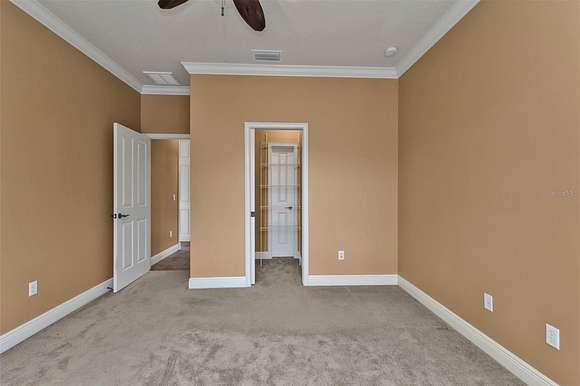 - Built-In Features, Ceiling Fans(s), Coffered Ceiling(s), Crown Molding, High Ceilings, Living Room/Dining Room Combo, Open Floorplan, Primary Bedroom Main Floor, Split Bedroom, Stone Counters, Thermostat, Tray Ceiling(s), Walk-In Closet(s)