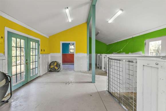 Previously operated as a doggie day care and animal rescue, this property is bursting with potential. The air-conditioned kennel, two feed/equipment sheds, and a horse barn with three stalls offer endless possibilities. Additional features include rabbit cages, an aviary, a large chicken coop, and several outbuildings.