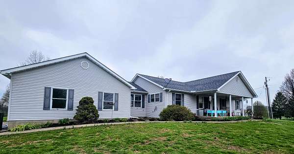 Country living at its finest! This spacious ranch sits on nearly 10 mostly flat, usable acres with a perfect blend of cleared and wooded land--complete with a pond, above-ground pool, and scenic views in every direction. Don't let the bedroom count fool you--this home offers 3+ bedroom potential! The main level features 2 bedrooms plus a versatile flex room currently used as a third bedroom, along with 2 oversized bathrooms. Everything you need is conveniently located on the main level, including laundry--ideal for easy, one-level living. Vaulted ceilings with exposed beam, a cozy fireplace, and a large screened-in porch make this home perfect for relaxing or entertaining. The mostly finished walkout basement adds even more flexibility with multiple rooms for bedroom/office space, or hobbies, plus a large family room with fireplace, full bathroom, and second laundry hookup. Kitchen features newer stainless appliances; roof replaced within the last 4 years. Attached 3-car garage (2 upper, 1 lower) plus a massive detached 4-bay garage with concrete floors and electric--perfect for a workshop, storage, or recreational vehicles. Quiet and private, yet just 10 minutes to Carrollton and I-71, and only 5 minutes to two golf courses and nearby wildlife management/public land.