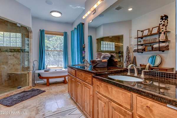 BACK ON MARKET ... PRE-FORECLOSURE SHORT SALE Entertainers paradise. Privacy and seclusion on a 5.27 acre (fully fenced) gated enclave in much desired Shadow Valley Ranch. Luxurious finishes throughout & priced below replacement cost. Granite Mountain views and adjacent to the willow creek head waters riparian area. Upper & lower casita is ideal for multi-generational living. Hardwood flooring. Espresso kitchen cabinets, granite counters & top end appliances. All bedrooms en-suite. Fitness/office can be 6th bedroom. Butler's Pantry with Sub-zero fridge, freezer & wine fridge + walk-in pantry. Master suite has private balcony; steam mist shower and soaker tub. Grounds: Pavered patios, two outdoor kitchens, Pizza Oven, 21' swim spa, hot tub, outdoor fireplace. Circular drive, rye grass, fruit trees, detached 3 car & 1.5 car garage.