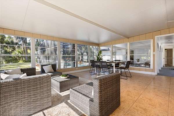 One or more photo(s) has been virtually staged. Wake up to glass-smooth water, towering pines, and the quiet rhythm of lake life at this remarkable Lake Dora estate, where classic design meets an unmatched waterfront lifestyle. Set on approximately 1.74 acres with an impressive ~256 feet of shoreline on Lake Dora--part of the renowned Harris Chain of Lakes--this property invites you to slow down, breathe deep, and savor every sunset from one of Central Florida's most treasured waterways. Best of all, there is no HOA, allowing the freedom to truly enjoy lake living on your own terms. Designed for both elegant entertaining and relaxed daily living, the home flows seamlessly into a sun-filled Florida Room and a screened lanai--ideal spaces to sip morning coffee, watch bald eagles return to their nest year after year, or unwind beneath the canopy of tall pine trees. The screened, heated saltwater pool extends the outdoor living experience, creating a private retreat that feels both tranquil and connected to nature. Boaters and lake enthusiasts will be drawn to the private dock, complete with two lifts, fishing access, and inviting swings that encourage lingering afternoons on the water. Lake Dora's expansive waters are ideal for fishing, skiing, and leisurely cruising. From your private dock, enjoy an easy ~6-minute boat ride to historic downtown Mount Dora, known for its charming boutiques, notable dining, and year-round festivals--bringing vibrant culture within effortless reach. The main residence reflects timeless craftsmanship, featuring rich hardwood floors, detailed crown molding, and gracious living spaces designed to frame the water at every turn. Lake views unfold from the living room, formal living room, and the downstairs primary suite--each thoughtfully positioned to capture the natural beauty of Lake Dora. The primary retreat, conveniently located on the main level, offers a peaceful sanctuary with serene water views to begin and end each day. The main home includes four bedrooms and three-and-a-half baths, with three bedrooms located upstairs--ideal for family or guests. Adding exceptional versatility is the detached in-law suite with a private entrance, bedroom, bath, and kitchenette, well suited for multi-generational living, extended stays, or a secluded guest or office retreat. Located just outside the Mount Dora city limits, this property blends peaceful lake living with effortless access to town, water, and community--along with convenient proximity to Interstate 429, providing easy travel to Florida's east coast beaches and the Orlando area's entertainment and business districts. This is more than a home--it's a lifestyle shaped by nature, tradition, and the simple luxury of life on the lake. Schedule your private tour and experience Lake Dora living at its finest.
