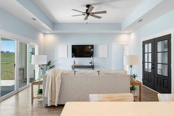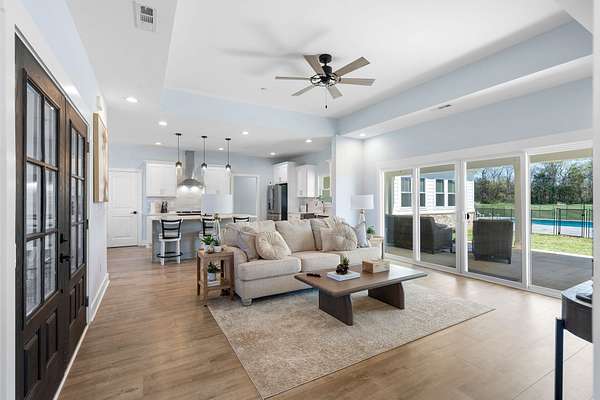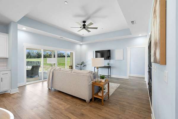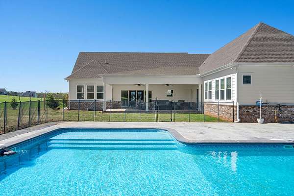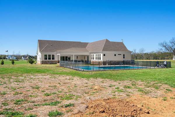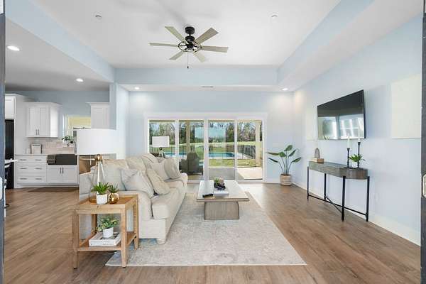 From the moment you arrive, the charming exterior and inviting curb appeal set the tone, with a long gravel driveway, a generous front lawn, and a welcoming covered rocking chair front porch. Step inside to bright, open living spaces highlighted by a tray ceiling and picturesque views of the backyard and pool. The expansive living room provides plenty of space for gatherings, with seamless access to the covered patio for effortless indoor-outdoor living. There is also a 50 amp RV plug and interior sprinkler system!