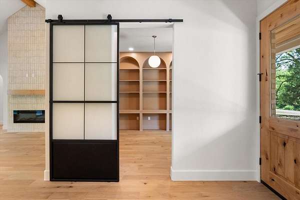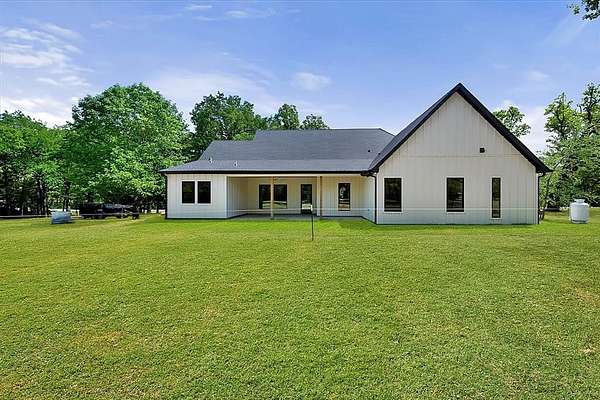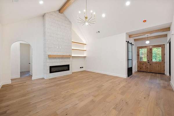Stunning New Construction Lake House! This custom home is located in the highly sought-after Hidden Oaks subdivision on Richland Chambers Lake. Built on a 1.88 acre heavily wooded lot offering exceptional privacy. This luxury home showcases high-end quality throughout the home, large corner lot with mature trees, and over 160' of dockable waterfront with lake access and the option to add retaining wall and your own dock. Thoughtfully designed with both luxury and functionality in mind, this 4-bedroom, 3.5-bath home features a dedicated office and formal dining space ideal for working from home and entertaining. The spacious living room has soaring vaulted ceilings with beautiful white oak beams and a dramatic floor-to-ceiling fireplace that creates a warm, inviting focal point. The chef’s kitchen is a showstopper with a large island, gas cooktop, pot filler, oversized sink, generous walk-in pantry, custom shaker cabinetry, and quartzite countertops. White oak hardwood flooring flows through most living areas, complemented by designer tile in wet spaces and 8-foot interior doors throughout. The private primary suite features a stunning cathedral ceiling with oak beams and a gorgeous ensuite bath with dual sinks, soaking tub, separate shower, and huge walk-in closet that has direct access to laundry room. Two additional bedrooms on level 1 with walk in closets and full hall bath. Upstairs, the bonus room with full ensuite bath provides flexible space for a bunk room, guest suite, or second primary. Additional highlights include Pella high-efficiency windows, open-cell foam insulation, Cat 5 wiring, oversized utility room with built-ins and storage, insulated garage door, and an oversized approximately 650 sq ft two-car garage. A rare opportunity to own a beautifully crafted luxury waterfront home combining modern design, premium finishes, wooded seclusion, extensive dockable shoreline, and access to Richland Chambers Lake.