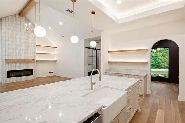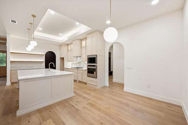 - Built-In Features, Cathedral Ceiling(s), Chandelier, Decorative Lighting, Eat-In Kitchen, Kitchen Island, Natural Woodwork, Open Floorplan, Pantry, Vaulted Ceiling(s), Walk-In Closet(s)