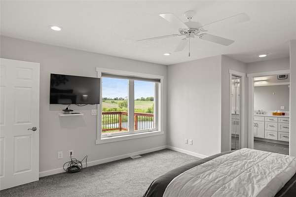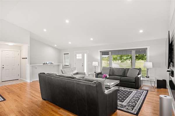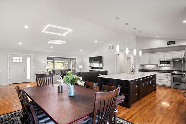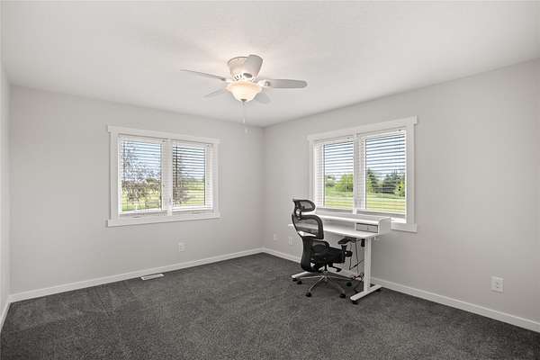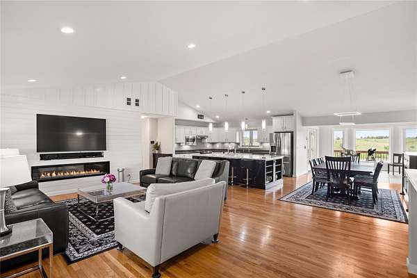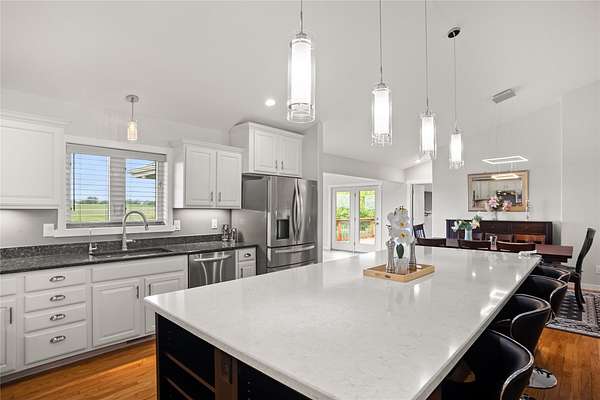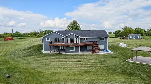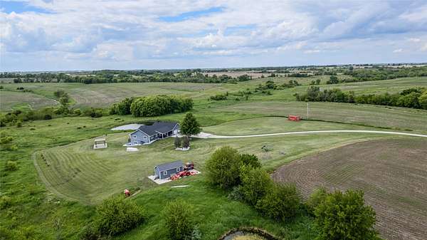 Over 4,000 square feet of finished living space on nearly 6.5 acres-offering a rare combination of space, updates, and setting just minutes from the Des Moines Metro. This 4-bedroom, 3-bathroom home features an open-concept main level with a spacious kitchen, center island, abundant natural light, and access to a large deck overlooking the property. A main-floor primary suite adds convenience and flexibility. The finished lower level includes a second kitchen, additional living space, office, storage, laundry, and a private bedroom with ensuite-ideal for guests or multi-generational living. The acreage features a private pond and usable outdoor space suited for recreation, entertaining, or future plans. Updates include windows, doors, siding, and major interior improvements. Septic system installed in 2015. Approximately 600 feet of gravel before reaching the home. A strong opportunity for buyers seeking space, functionality, and proximity to the metro.