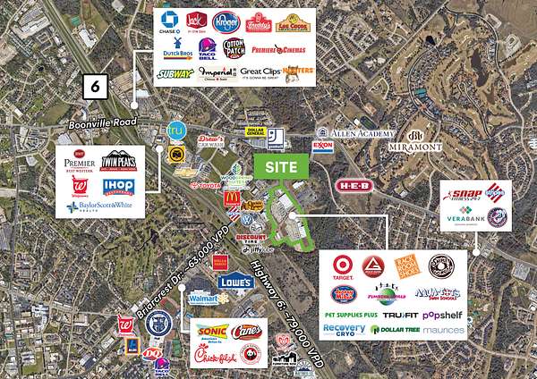 - Multiple points of access from State Highway 6 feeder and Briarcrest Drive with a combined 142,000 VPD
