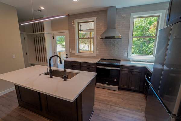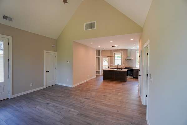 Built in 2024, this beautifully designed home offers modern style and peaceful surroundings. The open-concept layout features soaring ceilings, wide-plank flooring, and a stunning fireplace with custom vertical accent detail. The gourmet kitchen showcases a large quartz island, stainless steel appliances, subway tile backsplash, and sleek cabinetry--perfect for everyday living and entertaining.