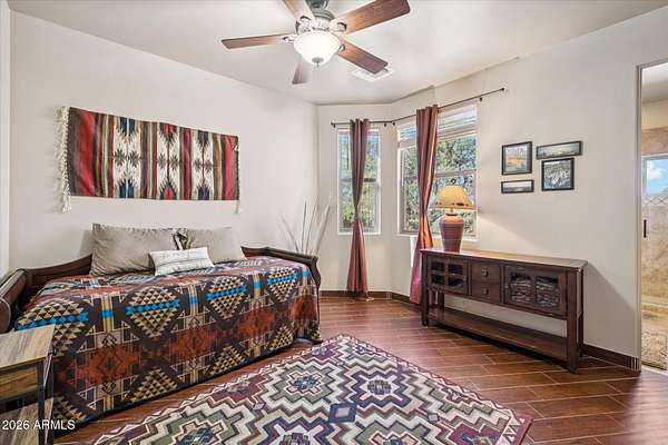 Escape to your own slice of AZ paradise where panoramic mountain views greet you every morning and spectacular sunsets bid you goodnight. This stunning 4 bd, 3 1/2 bath home spans 3,200 sq. ft. of thoughtfully designed living space, but the real magic happens outside your door. Step into your backyard oasis where relaxation takes on new meaning. The sparkling pool features a dramatic rock waterfall that creates a soothing soundtrack for your daily swim or poolside lounging sessions. When the sun sets and the desert air cools, slip into the bubbling hot tub while gazing up at Arizona's star-filled skies. The built-in BBQ station, complete with a convenient refrigerator, makes outdoor entertaining effortless whether you're hosting a casual family gathering or a dinner party. For those who appreciate unique touches, you'll discover a delightful Western Town complete with workshop space and ample storage-perfect for hobbyists, craftspeople, or anyone who needs dedicated project space with character. The 4-hole putting course offers endless entertainment and practice opportunities right in your own backyard, making every day feel like a vacation. Horse enthusiasts will appreciate the thoughtful equestrian amenities, including a well-designed corral and tack shed that provide everything needed for proper horse care and equipment storage. This setup allows you to pursue your passion for horseback riding without leaving home. As evening approaches, gather family and friends around the fire pit area where stories are shared, marshmallows are roasted, and memories are made. The outdoor space seamlessly blends entertainment areas with functional features, creating an environment where everyday feels special. The dining room has been converted to a fun 50's themed game room so the kids are going to love it too! The location offers the best of both worlds-peaceful desert living just 10 min. to Scottsdale. Just 1 mi. and you are on endless 4x4 or horseback riding trails throughout Tonto National Forest. Another 2 mi. and you can be fishing along the Rio Verde River at Needle Rock Recreational area. This property represents more than just a house-it's a lifestyle destination where outdoor living reaches new heights. From the mountain vistas to the entertainment features that transform your backyard into a resort experience, every element has been designed to enhance your quality of life. Whether you're seeking a peaceful retirement haven, a unique family home, or an entertainer's dream property, this residence delivers an unmatched combination of natural beauty, practical amenities, and pure fun. Your Arizona adventure begins here, where every day offers new opportunities to enjoy the spectacular outdoor lifestyle that makes desert living so appealing.
