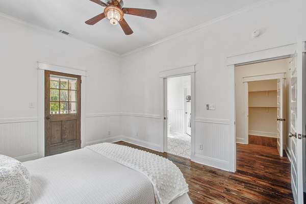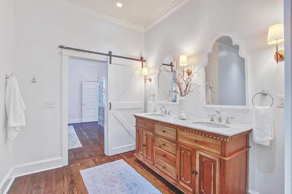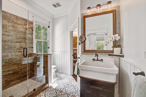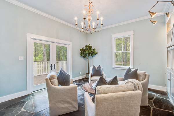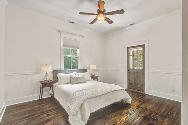 This fully licensed Johns Island Bed and Breakfast complex is situated on nearly 5 lush and private acres with separate 1br/1ba guest house and a detached catering kitchen with full hood system. Just minutes from Downtown Charleston and the beaches of Kiawah Island and Folly Beach, this sprawling property is the perfect Lowcountry retreat with 5 bedrooms, including one 3-room presidential suite, spacious dedicated parking area, and three separate kitchen facilities all situated amongst inviting open space framed by grand live oaks and native palmettos. A beautiful backdrop for elegant events or ideal lodging for groups or individual guests visiting one of the many coastal attractions nearby. Turn key for use as a bed and breakfast, Airbnb, wedding venue, or easily convert the property toa single-family Johns Island estate with income-producing elements or detached housing for your guests. The main house features a charming wraparound covered front porch, with glowing gas lanterns, ceiling fans to keep the coastal breeze stirring and plenty of room for rocking chairs, porch swing and outdoor dining. The antique wide plank hardwood floors welcome you into the bright and flowing first level with oversized windows and beautiful floor to ceiling French doors sharing the beauty of the property with the well curated interior. With ways to access the ample outdoor space from the first and second level, there are many opportunities to enjoy the charm and ambiance of this unique property from one of three large porches, including one off the first level bedroom with ADA accessible bathroom and another from one of the three additional bedrooms on the second level, all with en suite bathrooms. The third level is home to a large finished room with adjacent unfinished but fully insulated attic that could easily become a 5th bedroom suite. With almost 5 acres of privacy and gorgeous southern vistas, this property is exactly what people think of when they imagine the charm of nearby historic Charleston and its rustic coastal beauty. Please reach out to the listing agent for more details regarding operating history and potential Bed & Breakfast license transfer.