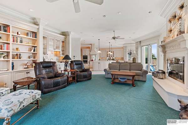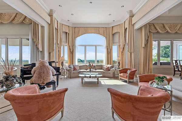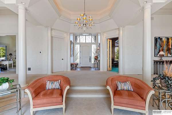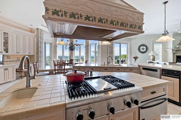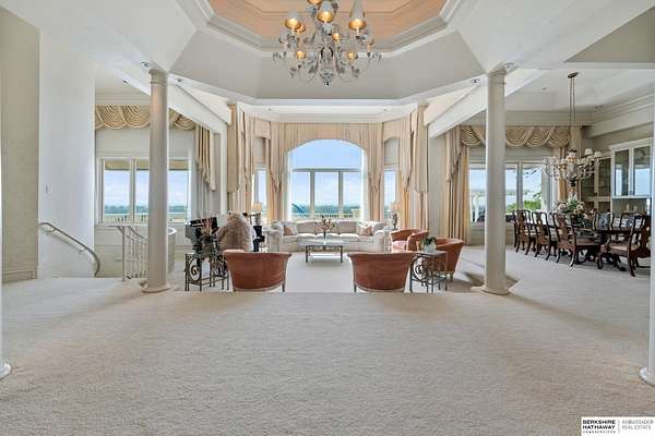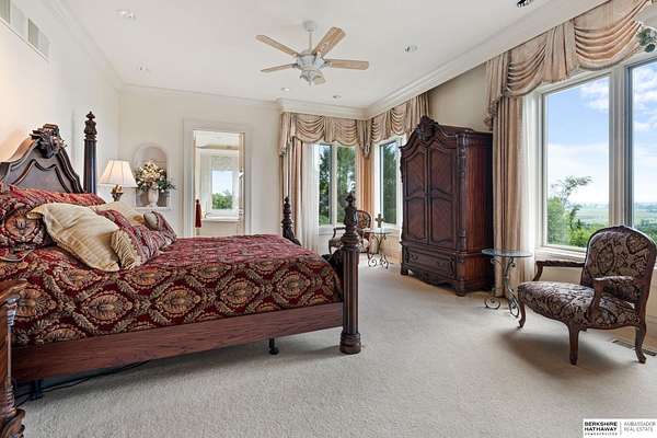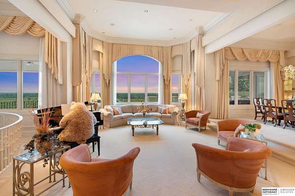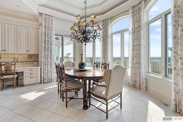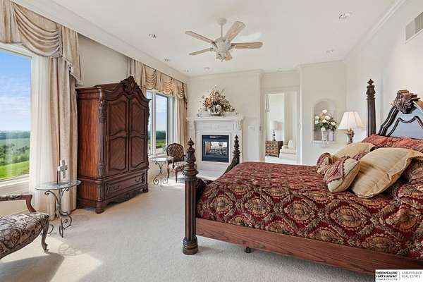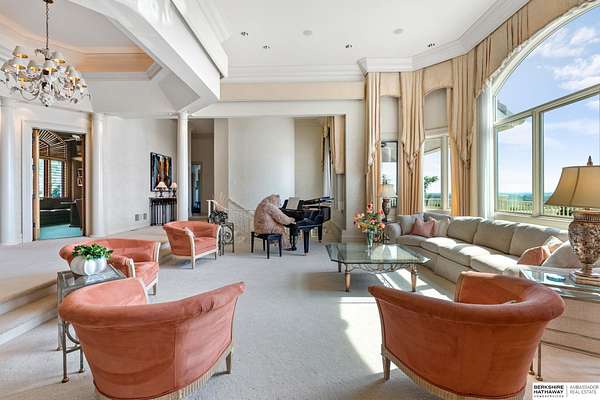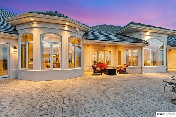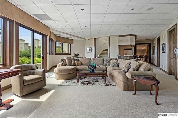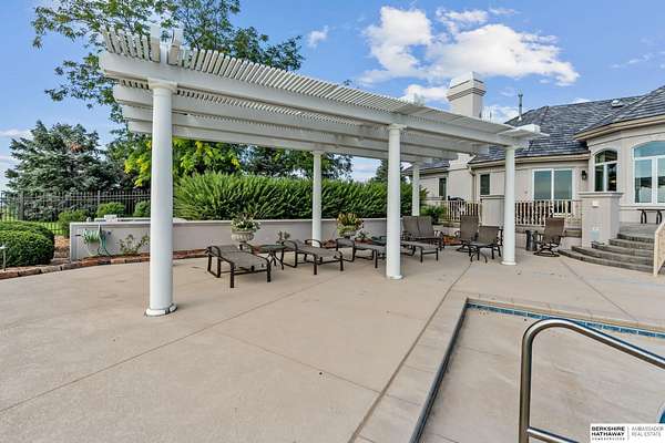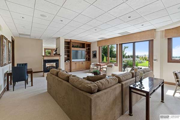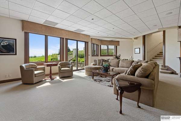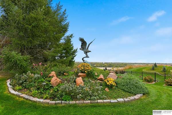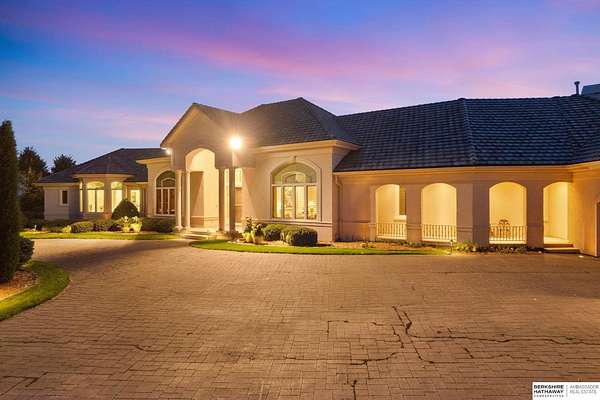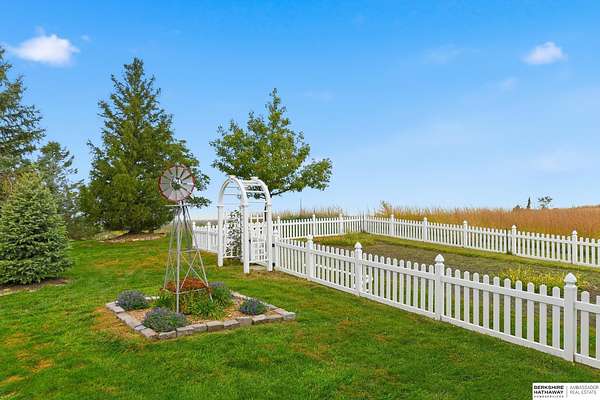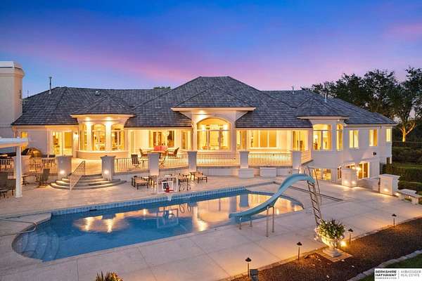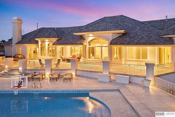 Deb Cizek, M: 402-699-5223, deb.cizek@bhhsamb.com, https://www.bhhsamb.com/deb.cizek - One-of-a-Kind Private 10+Acre Estate offers Expansive Views! Rarely available & rich in possibility, ranch home has sweeping, panoramic views stretching for miles. With this sprawling custom home, no detail was missed. Open living spaces were designed for everyday comfort & family entertaining. You'll love the bright, light-filled great rm w/ expansive windows & working in the wood paneled office or tiled sunroom. Kitchen w/ double islands, large walk-in pantry, & open to large hearth rm. Primary BR features sitting rm, exercise rm, laundry rm, & dreamy closet w/ built ins. W/O LL has 2 BRs, wet bar, & tons of storage. Major upgrades include new slate tile roof & Pella windows & sliding doors (see property highlights). Outside is a personal oasis: sparkling pool w/ automatic cover, slide, & fountains, cozy lounge areas, pergola, mature landscaping, lighting, & fenced garden area. With this once-in-a-