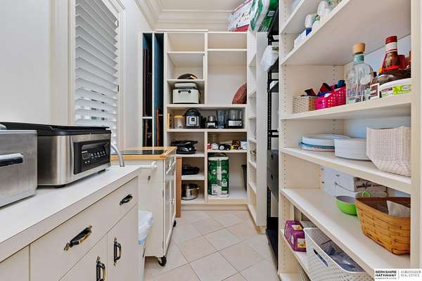 - 9'+ Ceiling, Ceiling Fan, Central Vacuum, Drain Tile, Exercise Room, Formal Dining Room, Garage Door Opener, Garage Floor Drain, Intercom, LL Daylight Windows, Pantry, Power Humidifier, Walk-Up Attic, Wetbar, Whirlpool