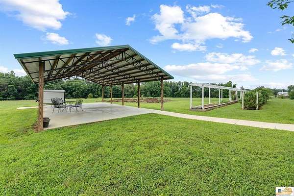 - Backyard Fence, Barn, Concrete Walks, Covered Front Porch, Covered Patio, Fence, Garden Area, High Tensil, Hot Tub, Landscaping, Out Building, Pond(s), Trees, Woven Wire
