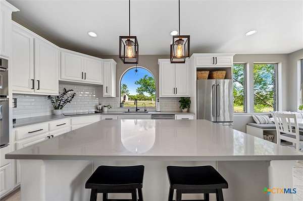 The Pursley Ranch is located just 6 miles West of Dripping Springs tucked away down winding county roads and situated in an ideal Texas Hill Country setting. The Pursley Ranch boasts a 2,262 ranch house, a 4 stall horse barn equipped with a 1 BR 1 BA guest quarters, a riding arena, on 51.7 acres of rolling hills, massive oak trees, views of the surrounding hills, a 1/2 acre pond, and a spring-fed grotto down in a ravine that runs through the center of the ranch. The ranch draws its water from an impressive 100 GPM well that serves the home and the barn.