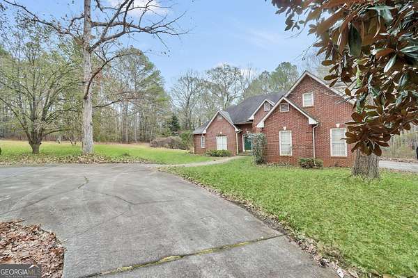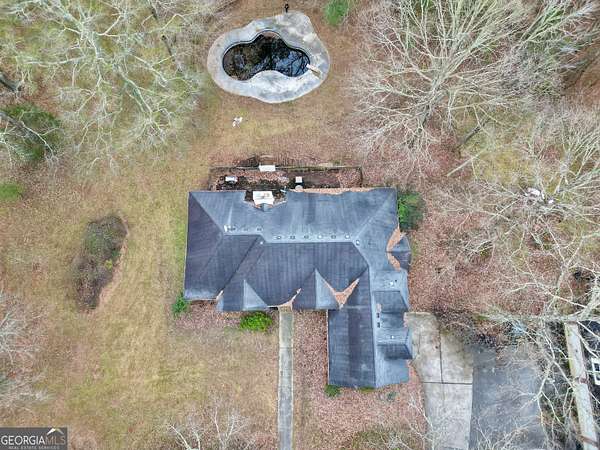 Tucked away in a peaceful, private setting, this 4-bedroom, 3 full bath home is full of space, character, and opportunity! Step inside to a huge open family room featuring vaulted ceilings and a cozy fireplace, creating the perfect space for gathering and entertaining. The home also offers a separate dining room and a large kitchen complete with stainless steel appliances, ready for your personal touch. The oversized master suite is a true retreat, featuring a soaking tub and separate tiled shower. Upstairs, you'll find a private bedroom with its own full bath-ideal for guests, teens, or a home office setup. Outside, the possibilities continue. In addition to the attached 2-car garage, there's an impressive detached 5-car garage (49x30) with stubbed living quarters above for a future 1BR/1BA apartment-perfect for guests, rental income, or multi-generational living. The backyard features an 18x36 in-ground pool just waiting to be brought back to life and turned into your dream outdoor oasis. Located just minutes from shopping and everyday conveniences, and less than 35 minutes to Hartsfield-Jackson Atlanta International Airport, this property offers the rare combination of privacy and accessibility. With great bones and endless potential, this home is ready for someone to bring it back to life and make it truly shine. Don't miss your chance to create something special!