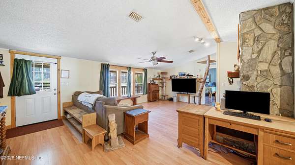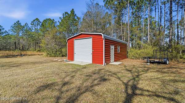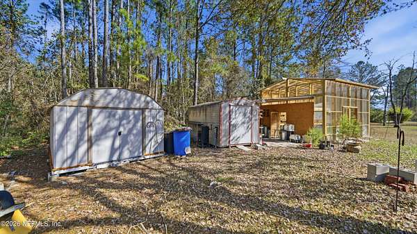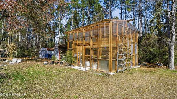 Welcome to peaceful country living in Hilliard! This beautiful 3-bedroom, 2-bath home sits on 2 acres of open space, offering privacy, room to spread out, and no HOA fees. Inside, you'll find spacious bathrooms and durable LVP flooring throughout, creating a comfortable and modern feel that's easy to maintain. The home provides a warm and inviting layout perfect for everyday living or entertaining family and friends. Step outside and enjoy everything this property has to offer. In addition to the home, there are multiple outbuildings including a detached garage/workshop, a unique two-story greenhouse perfect for gardening enthusiasts, and two additional storage sheds for tools, equipment, or hobbies. Whether you're looking for space to work on projects, grow your own plants, or simply enjoy the quiet of the countryside, this property offers the best of Florida country living with plenty of room to make it your own. Don't miss this opportunity to enjoy wide-open space, privacy, and freedom just minutes from town. All information pertaining to the property is deemed reliable, but not guaranteed. Information to be verified by the Buyer. Be advised that cameras may exist recording audio and video inside/outside the property, such as ring doorbells. Photos are digitally enhanced and could be altered, please verify.