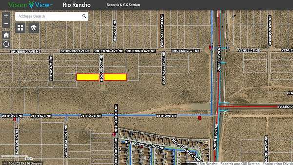 Est $346/mo2 lots available in Rio Rancho fronting the future expansion of Paseo Del Vulcan.