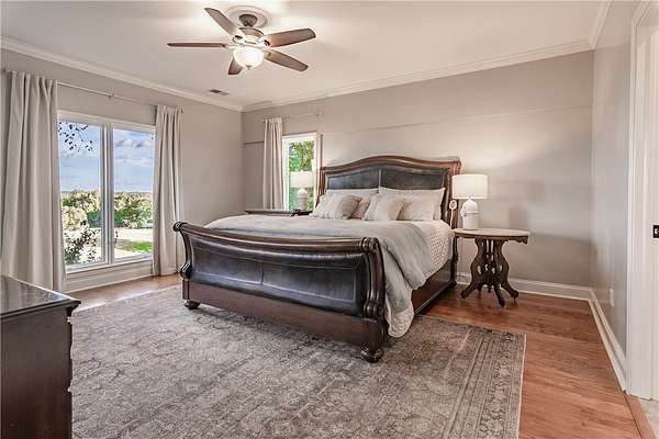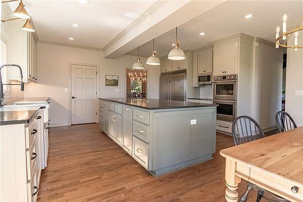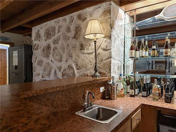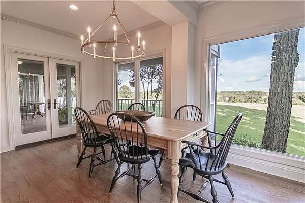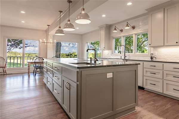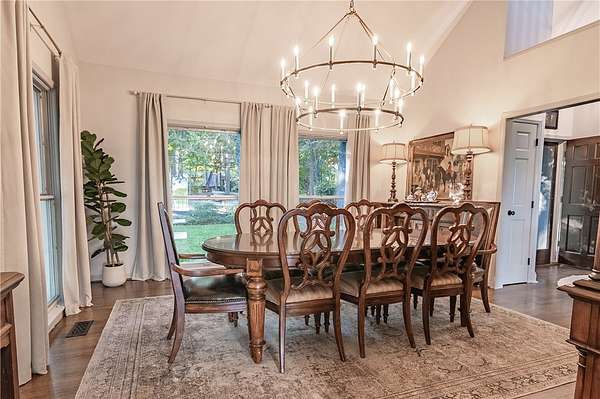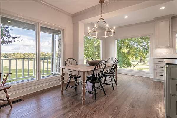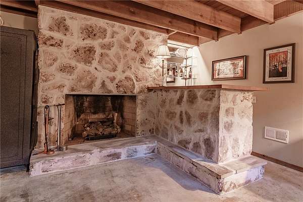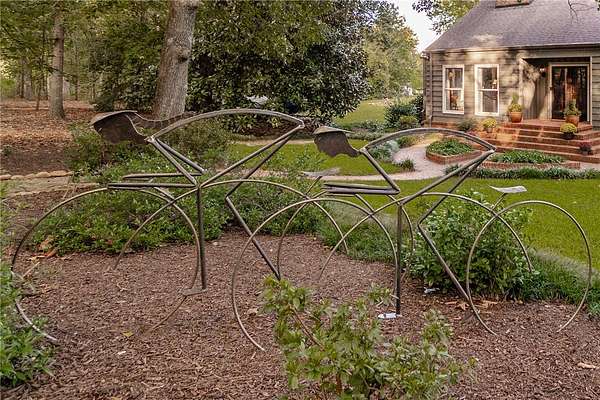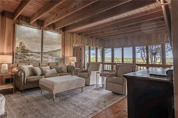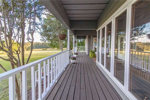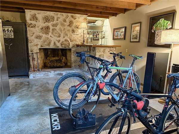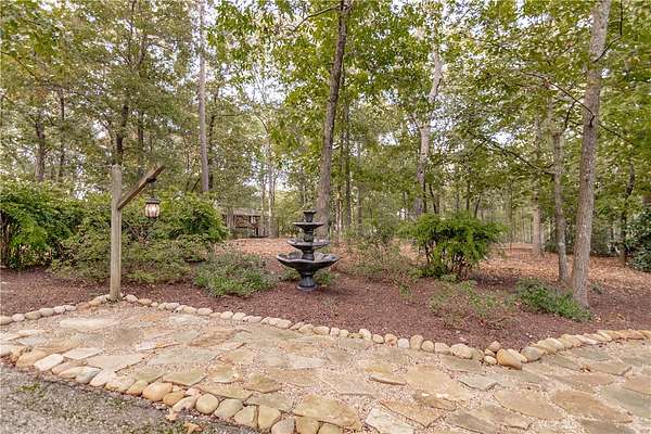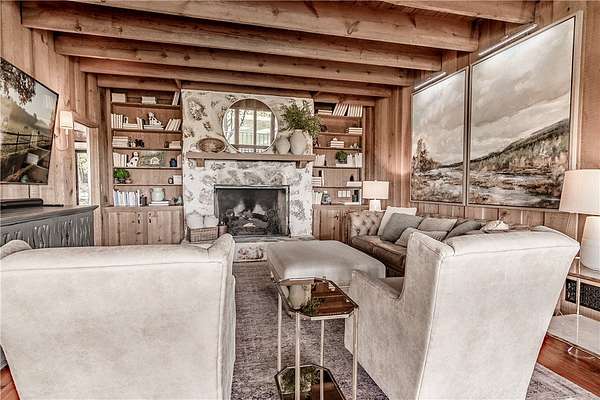 Wake up to inspiring views every day in this luxurious yet welcoming home, purposefully designed to maximize your ability to enjoy the beauty of its 5.4-acre setting in the sought-after Country Place subdivision--so close to everything yet feels like your own world. This 4 bedroom, 3.5 bath unique custom home offers timeless charm, modern updates, and spaces designed for gathering. The main floor showcases a stunning living room with rough-hewn cedar paneling, a floor-to-ceiling stone fireplace with gas logs, built-in bookcases, and an entire wall of windows overlooking the lush acreage. The beautifully remodeled kitchen (2022) is an entertainer's dream, featuring walls of windows, a massive island with a second sink, dual dishwashers, a built-in full-size refrigerator and freezer, a walk-in pantry with granite countertop, and an abundance of cabinet storage. The formal dining room is ideal for hosting large gatherings, while the flex room with fireplace can serve as an office or a formal living room. Also on the main floor is a half bath, as well as a bedroom with an en suite bathroom and access to the back porch. The expansive covered back porch is perfect for watching sunrises and moonrises that will absolutely take your breath away. Upstairs, the primary suite includes balcony access, a completely renovated spa-like bath (2019) with dual vanities, quartzite countertops, a large walk-in shower, and dual walk-in closets. Two additional bedrooms feature built-in desks, shelving, and private sink/cabinet areas with a shared tub and toilet, plus access to a bonus room that could serve as a 5th bedroom. From the hallway, there is also access to the balcony for everyone to enjoy the view. Continue up to the top level, where a skylit landing creates a cozy reading nook or hobby space, flanked by two walk-in attic rooms that provide abundant storage. On the basement level, a finished recreation room with wet bar and a floor-to-ceiling stone fireplace with gas logs-another perfect spot for entertaining. You'll also find an oversized 2-car garage and an additional storage room. This special home was thoughtfully designed to take in its beautiful natural surroundings-from the wooded front to the expansive back acreage. Here, every sunrise feels like a gift, and every gathering is made more special by the storybook setting. *Seller is a licensed Realtor*