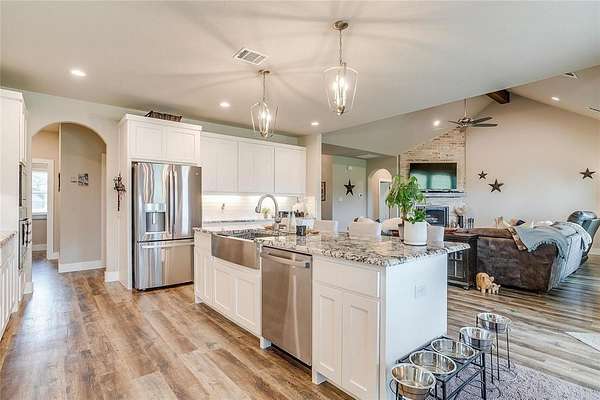 - Built-In Features, Decorative Lighting, Granite Counters, Kitchen Island, Open Floorplan, Walk-In Closet(s)