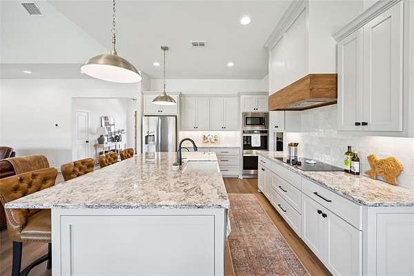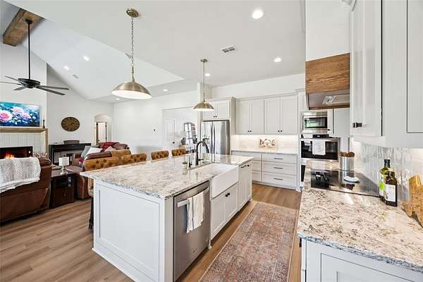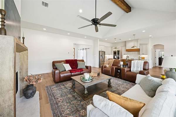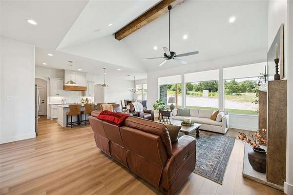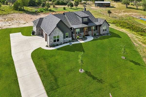 Experience the perfect blend of tranquility and convenience in this stunning 4-bedroom, 2.5-bath home set on a picturesque 2-acre lot with no HOA. Just 12 minutes from Weatherford Square, you'll enjoy the quiet beauty of the countryside--complete with deer, doves, and other wildlife--while staying close to shopping, dining, and entertainment. Enter to find a bright, open living room with a vaulted, beamed ceiling, a striking fireplace, and expansive windows framing sweeping views of the outdoors. The gourmet kitchen is a showstopper, featuring a large island with seating, sleek stainless steel appliances, abundant storage, designer finishes, and a cheerful breakfast nook. The private primary suite is a true retreat, boasting a spa-inspired bath with dual vanities, a soaking tub, an oversized walk-in shower, and an impressive walk-in closet. Additional bedrooms and a full bath provide plenty of comfort for you and guests. Enjoy the serene outdoor living spaces with a welcoming front porch and a covered back patio--perfect for sipping coffee at sunrise or unwinding with breathtaking sunset views. If you're seeking a home that combines elegance, comfort, and the peace of wide-open spaces, this one has it all. Don't miss the 3D tour available online! Bundled service pricing available for buyers. Connect with the listing agent for details.
