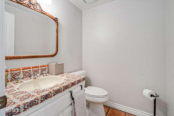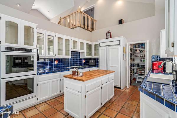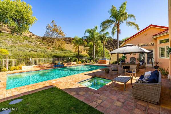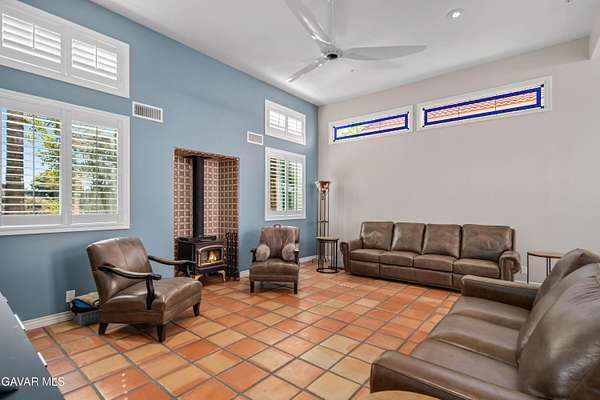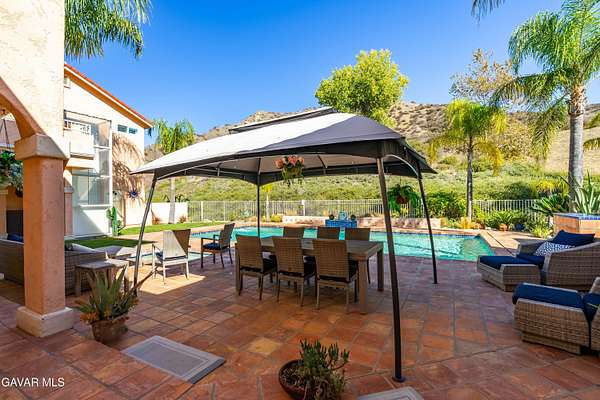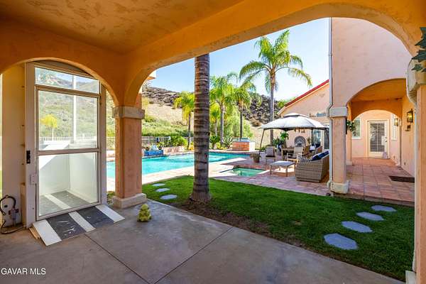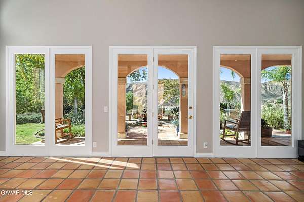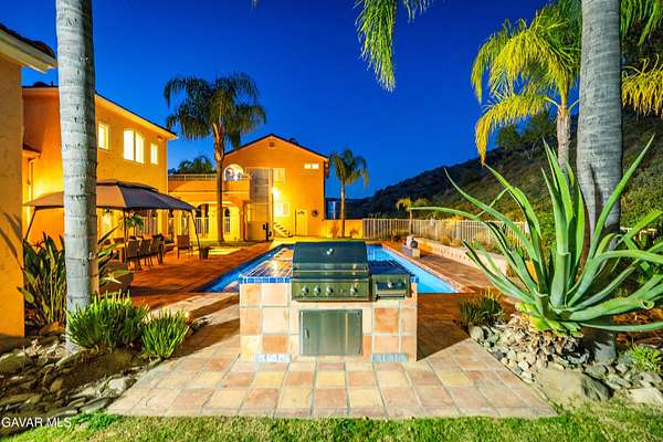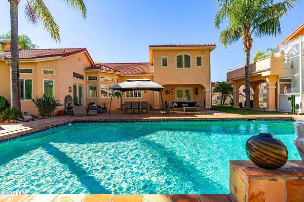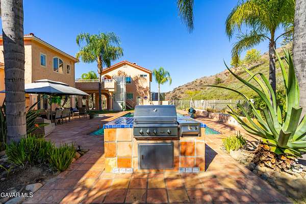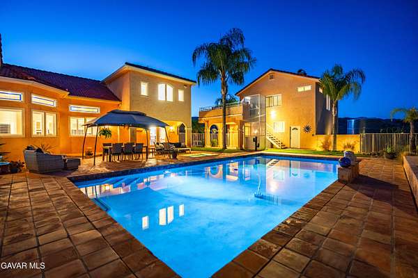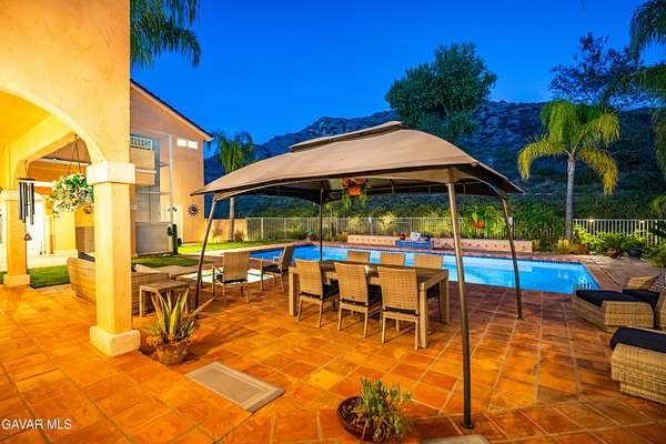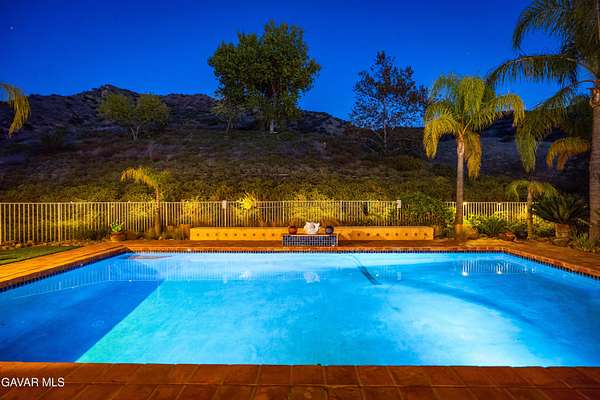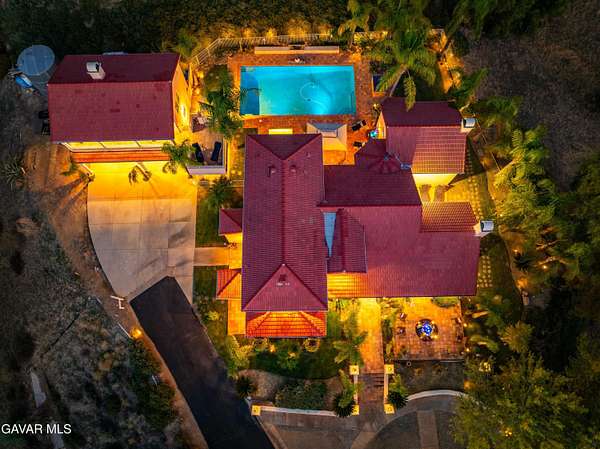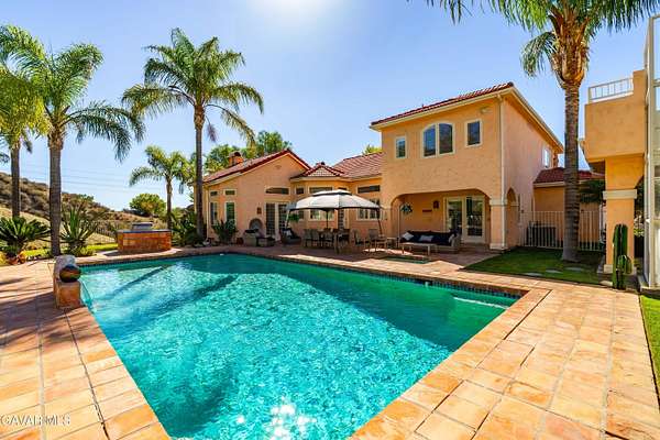 Discover unmatched tranquility and sweeping mountain vistas from this custom Mediterranean estate, perfectly set on six plush acres in historic San Francisquito Canyon. Built in 1994, this 3,151 sq. ft. villa offers 3 bedrooms, 2.5 baths, and a versatile room (office/den/study). A grand double-door entry welcomes you past lighted fountains into a foyer with vaulted ceilings and authentic Saltillo tile floors throughout the main level. The living and dining rooms center around a Spanish-tiled wood burning fireplace, framed by windows and French doors that open to the front patio and breathtaking views. The chef's kitchen features cobalt blue Italian tile, a butcher block island, and a walk-in pantry, while the adjoining family room offers a wood stove and views of the pool. The main level also includes two bedrooms, 1.5 baths, an office/den/study, and a laundry area. Upstairs, the primary suite is a private retreat with vaulted ceilings, panoramic views, a private deck, and a spa-inspired bath with Jacuzzi tub, large shower, and dual vanities. Step outside to an entertainer's paradise featuring a 20' x 40' heated pool and spa, built-in BBQ, and expansive patios perfect for relaxing or entertaining. The lower acreage offers open meadows ideal for horses, barns, storage, or stables. Above the oversized 3-car garage -with 9'+ ceilings, 220V power, sink, and automatic openers - is a fully permitted 650+ sq. ft. guest house featuring vaulted ceilings, a kitchen, wood stove, large bedroom, 3/4 bath, and private deck with panoramic views. An elevator provides wheelchair access, perfect for guests or extended family. Enjoy ultimate privacy where deer graze at dusk and peace surrounds you. A true blend of Mediterranean charm and Santa Clarita serenity - this one-of-a-kind estate must be seen to be believed.