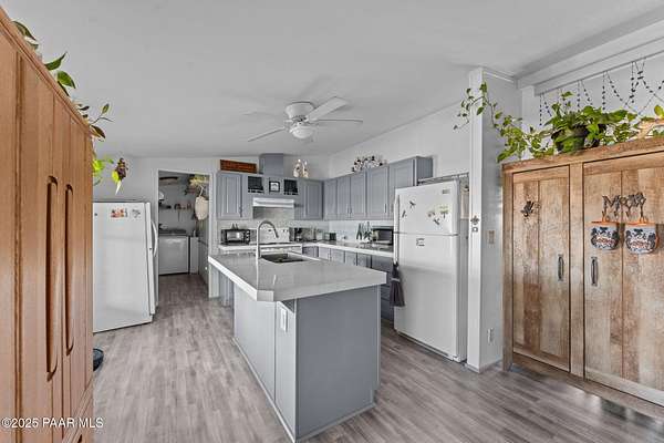 - Ceiling Fan(s), Eat-In Kitchen, Granite Counters, Kit/Din Combo, Kitchen Island, Walk-In Closet(s), Wash/Dry Connection