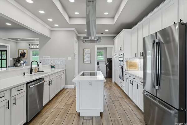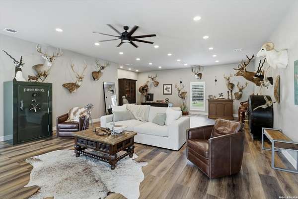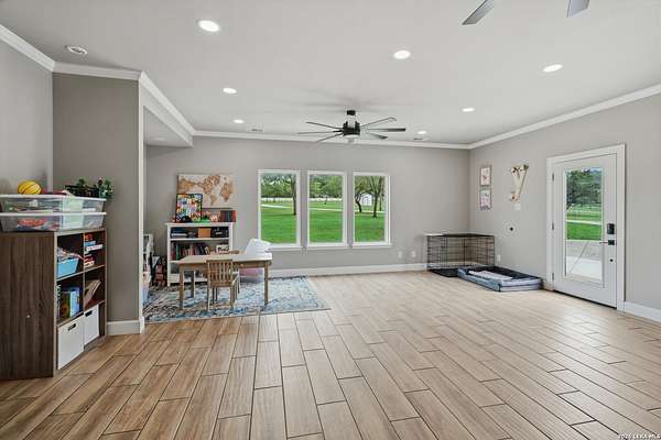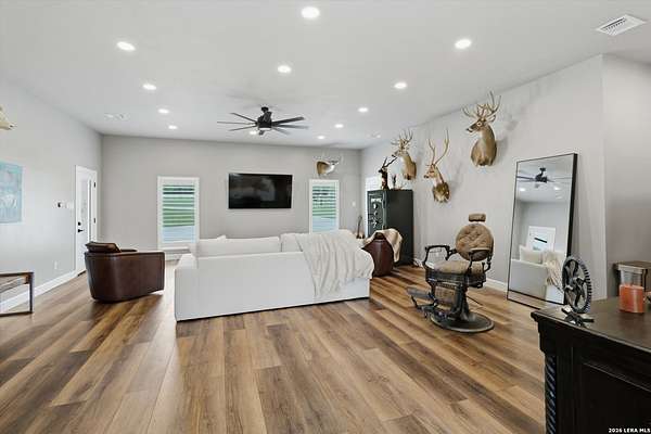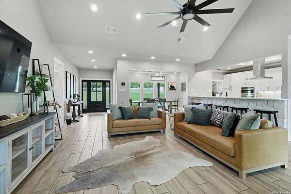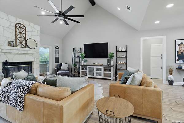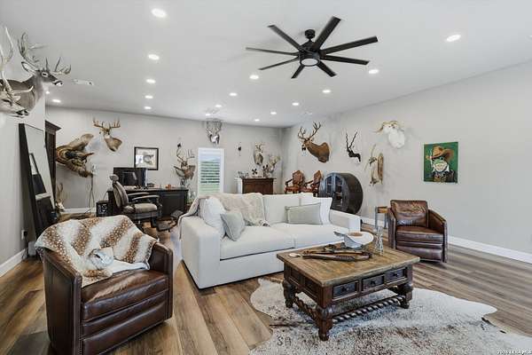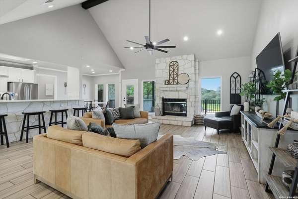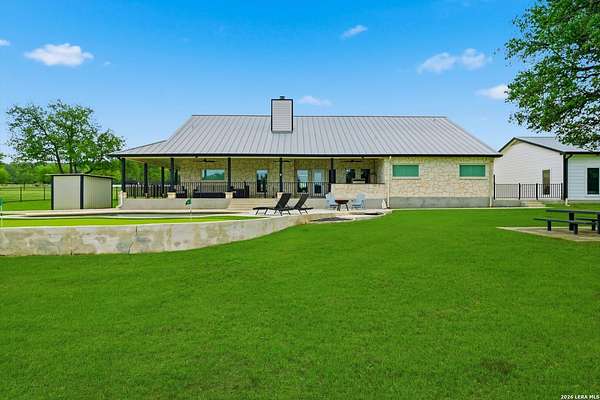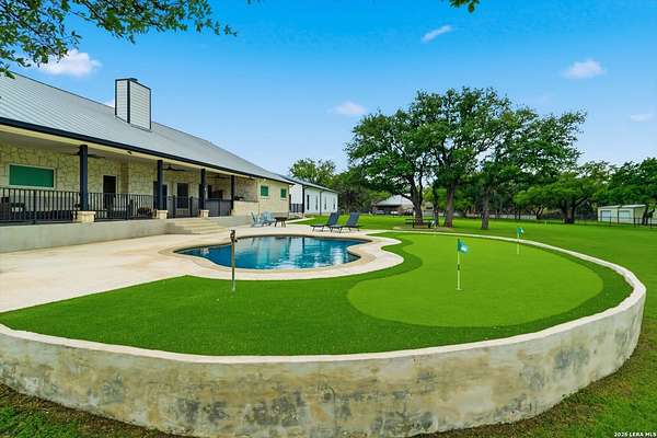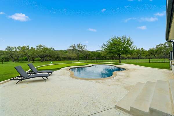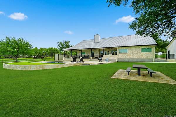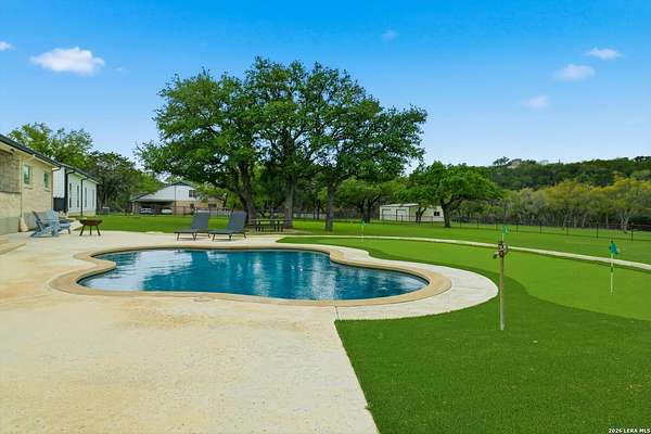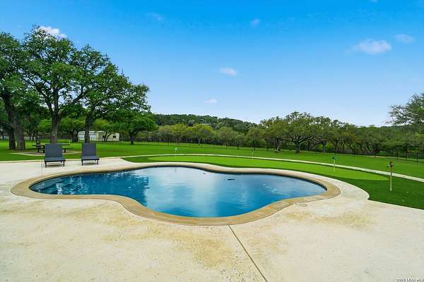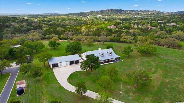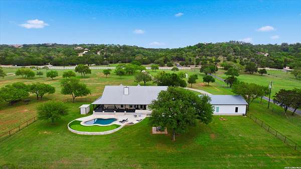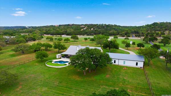Wake up to peaceful hill country views at 30041 Beck Rd. This stunning freshly renovated custom home is a perfect blend of Texas hill country charm and modern luxury. Featuring 4 bedrooms, 3 bathrooms and approx. 3820 sq. ft., this light-filled floor plan offers an open chef's kitchen with stainless appliances, granite counters and an island, a spacious primary suite with walk-in closet and large bathroom, plus a versatile office/formal dining room and spacious game room. The newly renovated outbuilding hosts a large living space, an oversized garage fitting 3 cars and a shop with air-conditioned storage. Enjoy outdoor living on a covered wraparound patio overlooking a private, landscaped yard on just under 10 acres. 30041 Beck delivers everyday comfort and effortless entertaining with an in-ground pool, putting green and an abundance of space for guests to enjoy the outdoors, while you grill in the outdoor cooking space. A true Bulverde lifestyle - come make it yours.