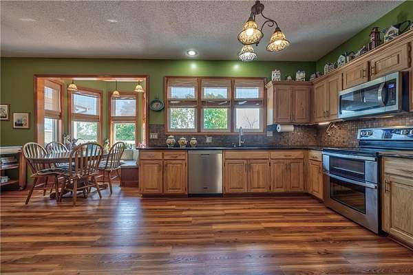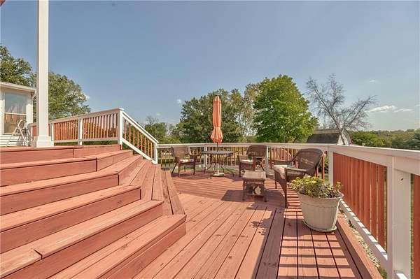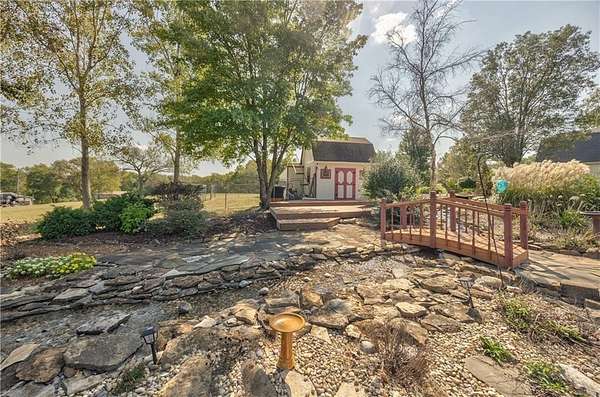 $120,000+ price reduction! Welcome to your private country retreat perfectly located on 2.24 serene acres in a cul-de-sac. This beautifully maintained home offers an open-concept layout, with a spacious kitchen featuring granite countertops, stainless steel appliances, a large pantry, and built-in breakfast seating. It flows seamlessly into the family room and formal dining area--perfect for both everyday living and entertaining. Step outside to enjoy the expansive enclosed porch and multi-level deck, ideal for gatherings or relaxing in nature. The beautiful living room is anchored by a wood-burning fireplace for those chilly evenings. The generous primary suite includes a sitting area, walk-in closet, and private martini deck. The luxurious ensuite bath features a whirlpool tub, separate shower, and dual vanities. Bedroom 4 offers a vaulted ceiling and built-in play area. The finished lower level can serve as a large rec room or 5th bedroom with its own walk-in closet and full bath with a soaker tub/shower combo. Enjoy the convenience of dual laundry areas--one on the bedroom level and one in the basement utility room, complete with sink and folding counter. A 3-car garage includes a partially finished bonus space (removable by seller if preferred). The beautifully landscaped yard features mature trees, fruit trees, a tranquil ornamental pond with waterfall, and a large shed with lean-to and overhead storage--ideal for tools, lawn gear, or ATVs. Fully fenced area off the lean-to is perfect for pet lovers. 48" Cub Cadet zero-turn mower and other equipment included with an acceptable offer. Wildlife sightings are common, making this home a true nature lover's dream. Don't miss the opportunity to own this peaceful, well-appointed retreat that blends modern comfort with natural beauty--just minutes from town, yet a world away.