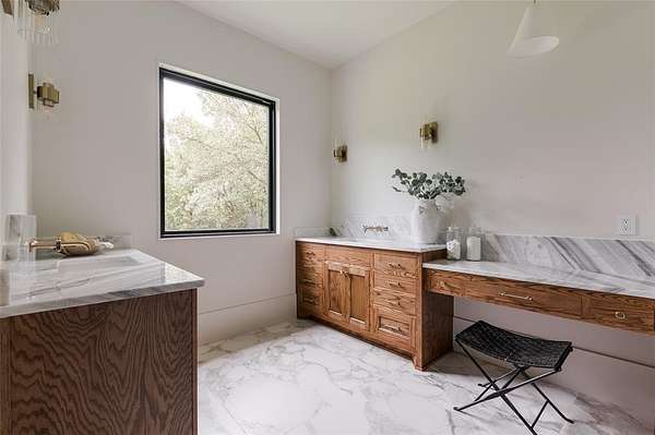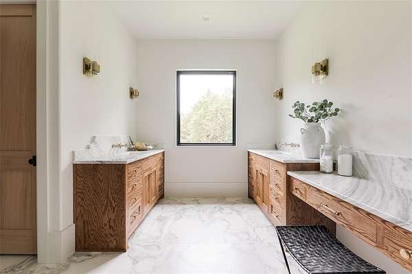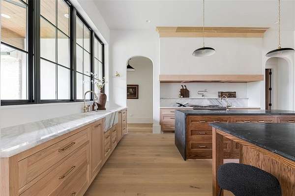 Picturesque setting in the private gated community of Lake of the Woods. This new construction, custom build, designed with Kelsey Leigh Design Co., sits on 3.57 acres with beautiful views of the lake. Designed as a walk out basement, this home just might check off everything on your list throughout the 5782 square feet. Complete with four bedrooms (not all pictured in listing), four full private en suite bathrooms, two half baths, a dedicated formal dining, and office/study, a main living area, and the basement bonus/game room, theater room, beverage center, home gym, and views from the balcony off of the main level, as well as the covered patio with outdoor kitchen leading out from the basement toward the lake. The main kitchen features an expansive walk in pantry, and large double islands. The 3 car garage is set up as a double connected to a very oversized single car garage. The massive front door and expansive entry, with windows emphasizing natural light highlight the tall ceilings and views from every window throughout the home. Make 3005 Bee Hive Way your escape to privacy and relaxation today.
