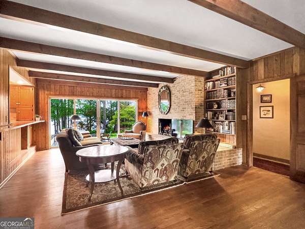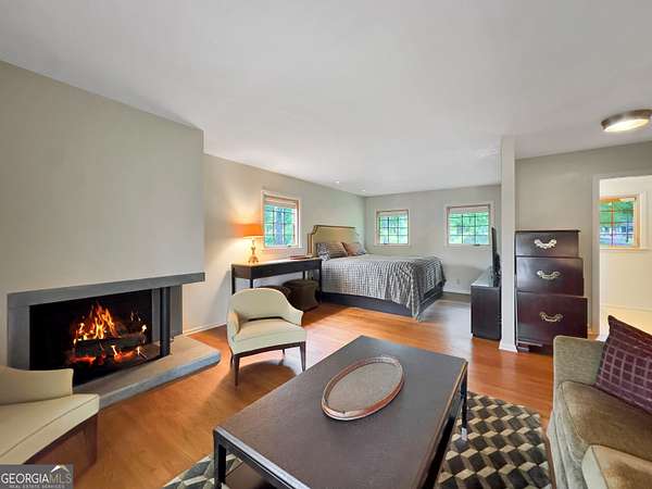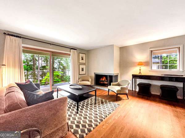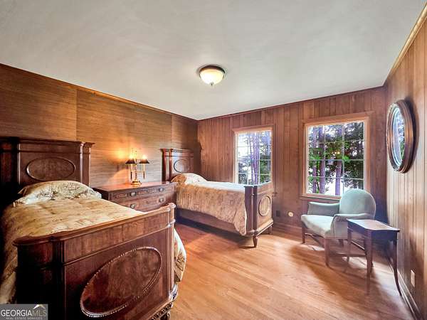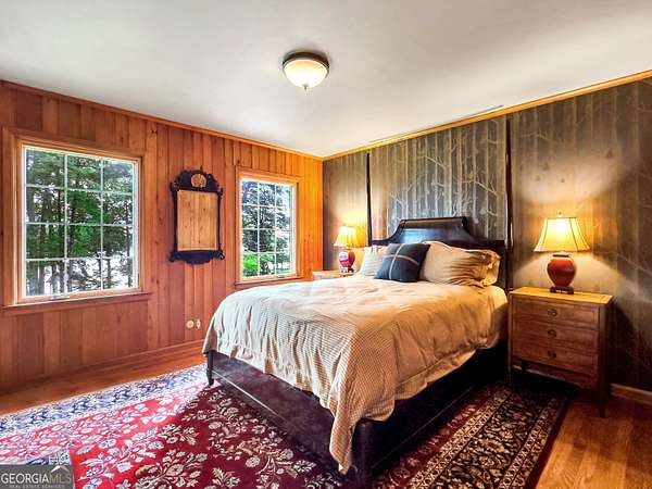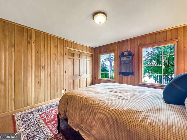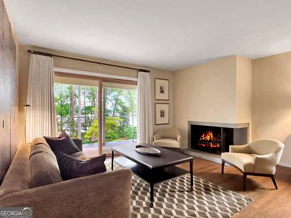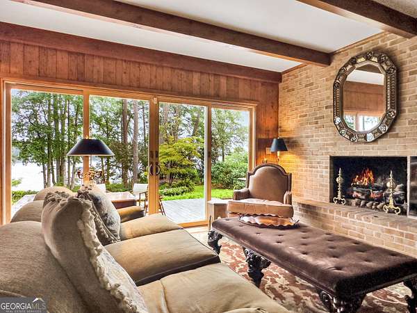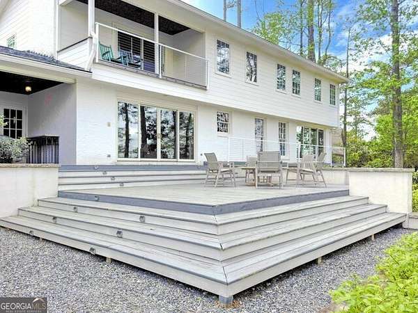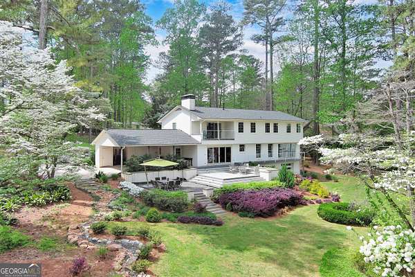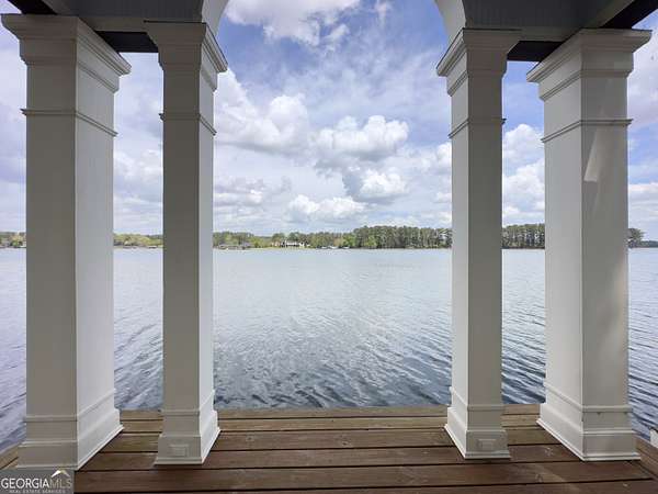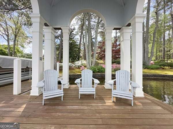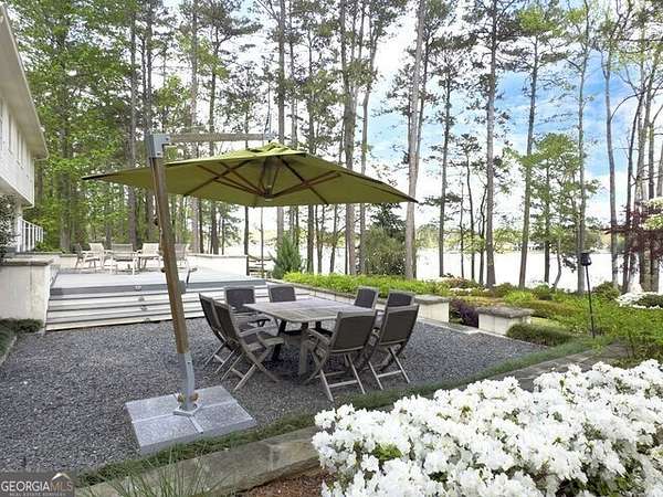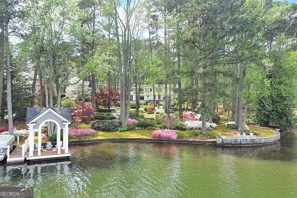This house is a treasure. An exquisite two-acre, deep-water, terraced lakefront lot on private Lake Spivey. Over 214 feet of pristine lakefront, perfect for all activities like fishing, skiing, sailing, and rowing. The highlight of the lot is the magnificent stone seawall with a spacious brick patio projecting into the lake, complemented by a charming, Greek Revival-inspired, award-winning boat dock. The shoreline infrastructure provides an ideal setting for large gatherings of family and friends, offering incomparable views of the lake and the spectacular fireworks display on the 4th of July. The house has a northeast exposure on the lakeside, which allows for stunning sunrises over coffee and moonrises over cocktails from either the second-story deck off the primary bedroom or the first-floor deck and terrace. Both locations are perfect for taking in focused views of the lake over a garden where something is in bloom every season. The seamless transition from indoors to outdoors makes the house, shoreline patio, and dock ideal for every gathering. The architecture is traditional, with a welcoming porch leading into 3200 square feet of light-filled charm, including five bedrooms and four bathrooms. Beautiful hardwoods on the first and second floors. One guest bedroom and the primary bedroom both have en-suites. The primary bedroom boasts a cozy sitting area and a contemporary fireplace that can be enjoyed from either the bed or the sitting area. The open floor plan of the kitchen flows into a spacious and warm family room enhanced with rare wormy chestnut paneling, accentuated by an oversized fireplace. Both the family room and dining room area overlook the lake with a wide wall of windows showcasing the gently sloping terraced garden. The full bath on the first level accommodates swimmers and boaters and their gear. Downstairs offers an additional 1300 square feet of buildable space. Experience all the peace and tranquility of lake living, just 5 minutes from I-75, 20 minutes from Atlanta International Airport, 25 minutes from downtown Atlanta, and 30 minutes from Atlanta's premier shopping districts. Costco and Starbucks are a mere 7 minutes away, along with a variety of restaurants and other conveniences. Altogether, this property has an overwhelming sense of place - it's pure magic!