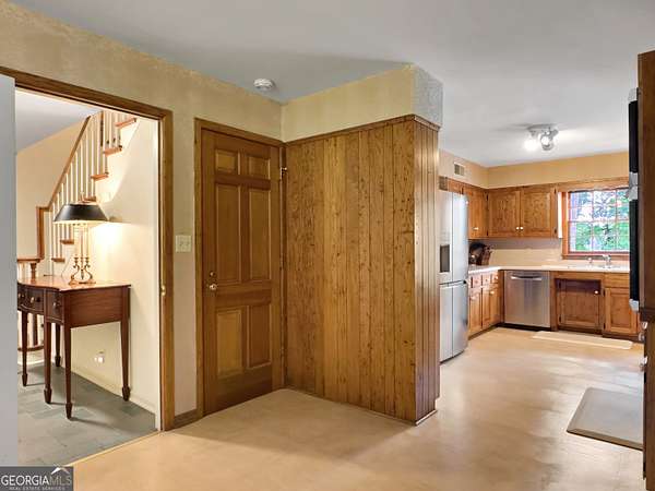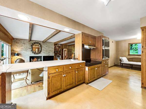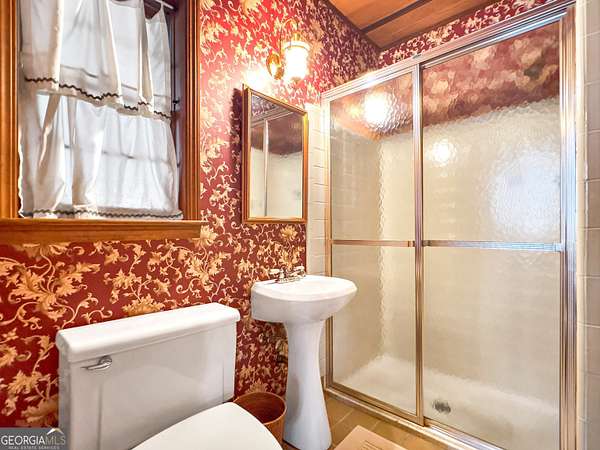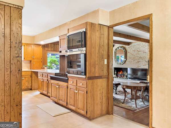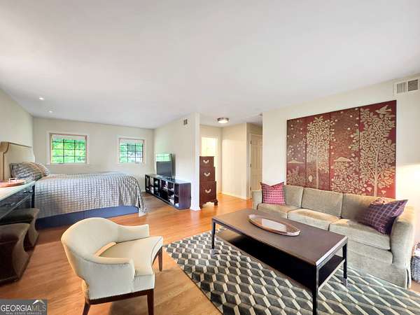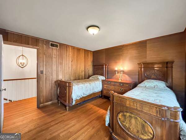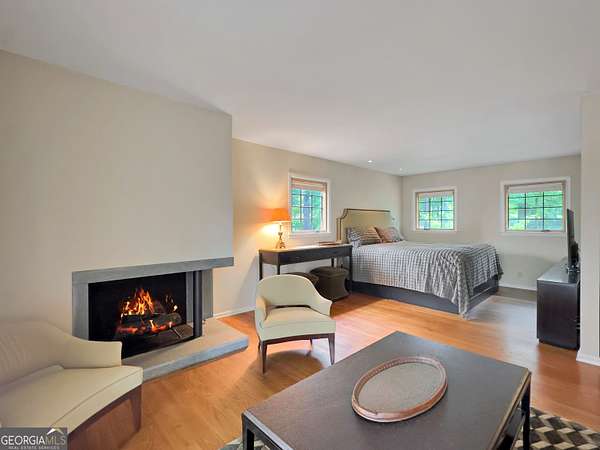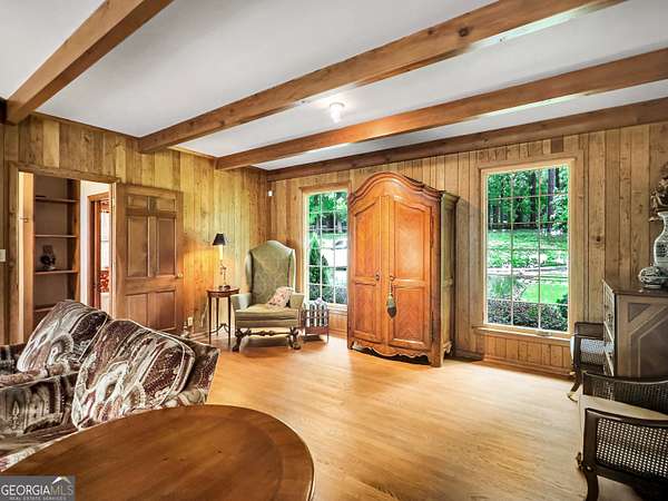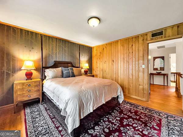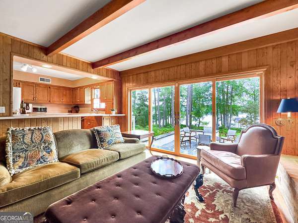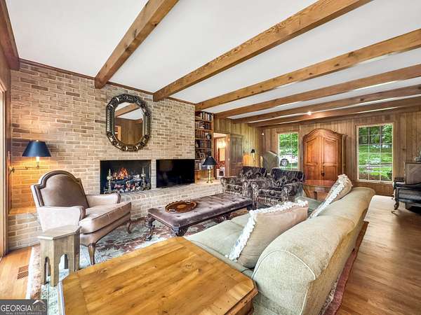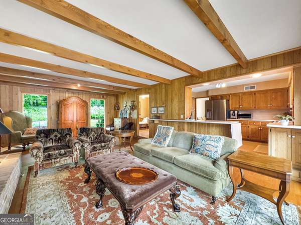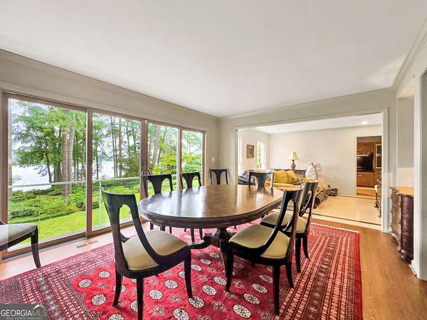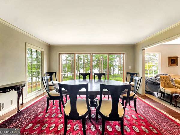 This house is a treasure. An exquisite two-acre, deep-water, terraced lakefront lot on private Lake Spivey. Over 214 feet of pristine lakefront, perfect for all activities like fishing, skiing, sailing, and rowing. The highlight of the lot is the magnificent stone seawall with a spacious brick patio projecting into the lake, complemented by a charming, Greek Revival-inspired, award-winning boat dock. The shoreline infrastructure provides an ideal setting for large gatherings of family and friends, offering incomparable views of the lake and the spectacular fireworks display on the 4th of July. The house has a northeast exposure on the lakeside, which allows for stunning sunrises over coffee and moonrises over cocktails from either the second-story deck off the primary bedroom or the first-floor deck and terrace. Both locations are perfect for taking in focused views of the lake over a garden where something is in bloom every season. The seamless transition from indoors to outdoors makes the house, shoreline patio, and dock ideal for every gathering. The architecture is traditional, with a welcoming porch leading into 3200 square feet of light-filled charm, including five bedrooms and four bathrooms. Beautiful hardwoods on the first and second floors. One guest bedroom and the primary bedroom both have en-suites. The primary bedroom boasts a cozy sitting area and a contemporary fireplace that can be enjoyed from either the bed or the sitting area. The open floor plan of the kitchen flows into a spacious and warm family room enhanced with rare wormy chestnut paneling, accentuated by an oversized fireplace. Both the family room and dining room area overlook the lake with a wide wall of windows showcasing the gently sloping terraced garden. The full bath on the first level accommodates swimmers and boaters and their gear. Downstairs offers an additional 1300 square feet of buildable space. Experience all the peace and tranquility of lake living, just 5 minutes from I-75, 20 minutes from Atlanta International Airport, 25 minutes from downtown Atlanta, and 30 minutes from Atlanta's premier shopping districts. Costco and Starbucks are a mere 7 minutes away, along with a variety of restaurants and other conveniences. Altogether, this property has an overwhelming sense of place - it's pure magic!
