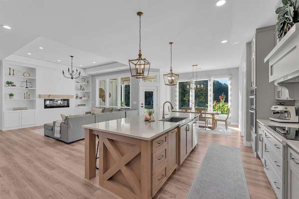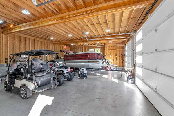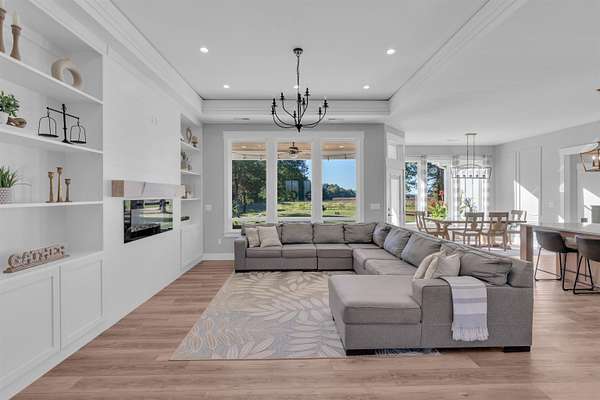 Stunning Craftsman-Style Home on 1.83 Acres-No HOA's or Deed Restrictions! Discover the perfect blend of comfort, craftsmanship, and convenience in this beautiful 3-bedroom, 3-bath home set on a spacious lot. Ideally located with easy access to major highways, and just minutes from shopping, dinning, and top-rated schools, this property offers peaceful living without sacrificing convenience. Step inside to a bright and open Great Room, featuring tall ceilings, large windows that fill the space with natural light, and built-in bookcases with cozy electrical fireplace. Durable SPC flooring flows seamlessly through the main living areas, creating a cohesive and modern feel. The gourmet kitchen is designed to impress, complete with stainless steel built in appliances, a large island with quartz countertops, tile backsplash, and designer vent hood. The dinning area, open to the kitchen, offers plenty of windows for a light and airy atmosphere-perfect for gathering and everyday meals. The owner's suite features a tray ceiling, double vanity, tiled shower, soaker tub, and a large walk-in closet with custom built-in shelving. The closet connects directly to a spacious laundry room with cabinetry, counter space and a mud sink for added convenience. Two additional bedrooms are located on the opposite side of the home, offering privacy and ample space. Upstairs, a finished Flex room over the garage includes a full bath and walk-in closet, ideal for guests a home office, or a private suite. Outside, enjoy the covered patio, long, driveway with extra parking, and a detached workshop with over 1,000 sqft of unfinished space-perfect for a studio, storage, or future expansion. With no HOA's you'll have the freedom to make this property your own. Don't miss this rare opportunity to own a beautifully designed home on a private, spacious lot in a prime location.