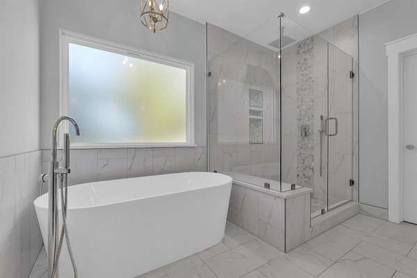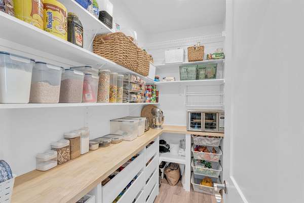- Ceiling Fan, Ceilings-Some 9 FT +, Ceilings-Trey, Countertops-Solid Surface, Fireplace, Garden Tub, Open Floor Plan, Smoke Detector, Split Bedroom Plan, Utility Sink, Walk in Closet, Walk-In Pantry