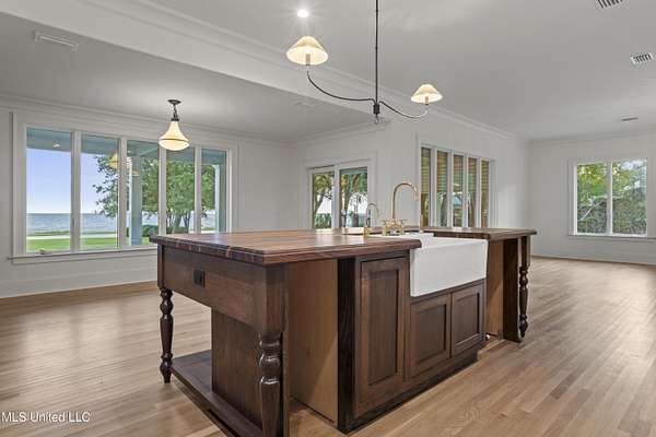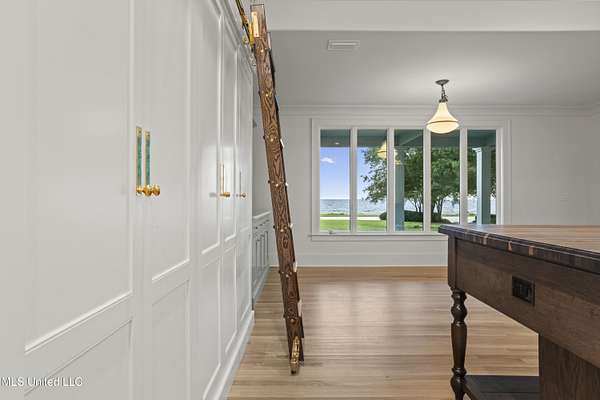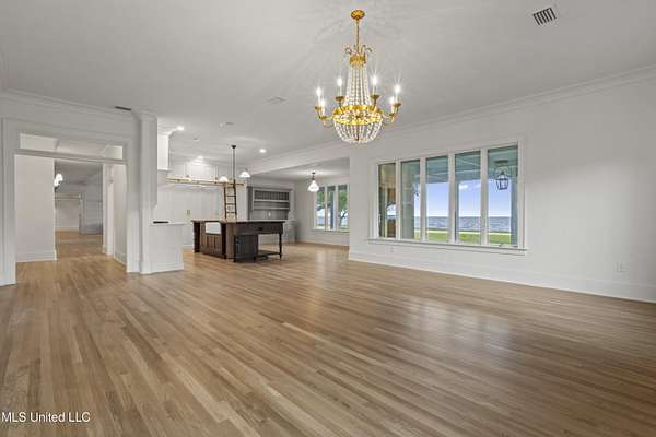 Lovingly designed with intention and heart, this one-of-a-kind 6-bedroom, 5.5-bath coastal estate offers a rare opportunity to own a timeless property with sweeping beach views. Spanning 5,675 square feet and set on 1.54 acres, this grand home blends classic charm with modern luxury, every detail curated for both elegance and comfort. Inside the Home: Step into soaring 10-foot ceilings on both levels, newly installed hardwood floors, and floor-to-ceiling double-pane windows that fill the home with natural light and frame breathtaking coastal vistas. The chef's kitchen is a dream, featuring: Top-tier Wolf range Integrated built-in refrigerator Custom wood island Rolling ladder for easy access to bespoke upper cabinetry Formal dining room with expansive water views Retreat to a luxurious main-floor primary suite with: Walk-out porch with panoramic water views Dual walk-in closets Spa-like ensuite bath with soaking tub, walk-in shower, and dual vanities Designer-selected lighting and timeless finishes Guest Accommodations & Upstairs Living: First-floor guest suite with private ensuite bath, ideal for visitors Four additional bedrooms upstairs, including one with a private ensuite Upstairs bath features a triple vanity, separate soaking tub, and walk-in shower, designed for both style and function Additional Features: Bonus first-floor flex room ideal for a media room, playroom, or home studio Detached 2-car garage with half bath, perfect for conversion into a future pool house Covered front porch with slate tile and gas lanterns. New roof and tankless energy-efficient water heater. Professionally landscaped grounds with plenty of space for a pool. Why You'll Love Living Here: Live the coastal lifestyle: sandy beach walks, boating, parks, and a vibrant local restaurant scene await. And with Amtrak service coming soon to Pascagoula, Gulf Coast travel has never been easier. Schedule your private showing today, homes of this caliber and setting are incredibly rare. Experience the beauty, luxury, and soul of this exceptional coastal estate.