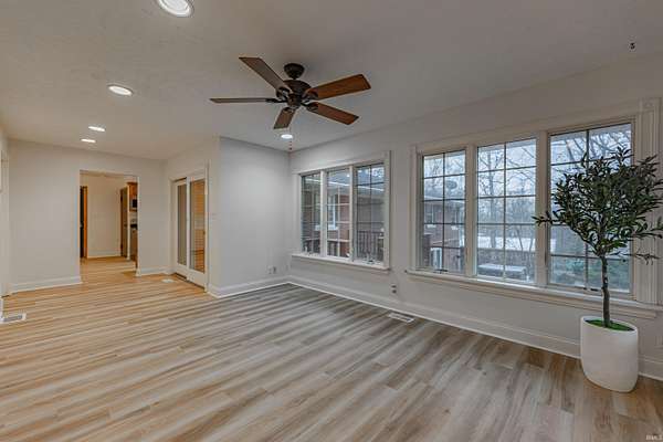 Wow! You have been waiting for this one to come along! Rare find on Evansville's West Side! Brick traditional ranch. Close to great schools, churches, shopping etc. There is abundant storage everywhere in this home. 4/5 bedrooms, large finished walk out basement with full bar and wood burner. Solid wood floors, another fireplace (which is gas), sunroom, glass door knobs, a stainless glass window adds to the charm!. A beautiful tree filled lot with almost 3 acres to enjoy. The home has updated flooring, new stainless steel appliances, trim, etc. It has been lovingly cared for and includes a large garage attached and an additional outbuilding that is great for recreation..i.e. she shed, kids hang out or man's dream space! Very secluded with outdoor deck that is great for sitting in the evenings. There is so much to see with this home. Hot tub, pool table, riding mower are negotiable. Don't miss out!