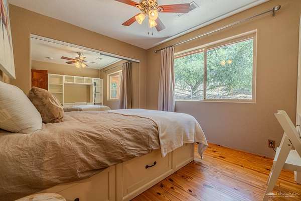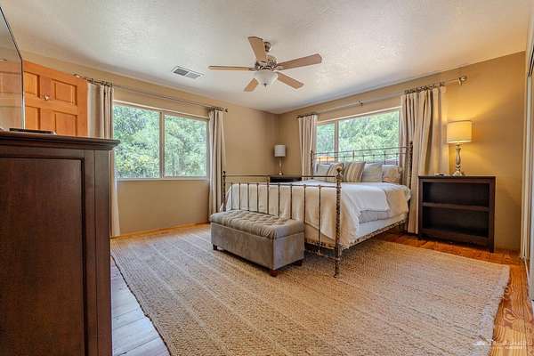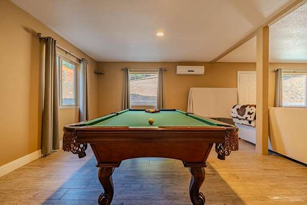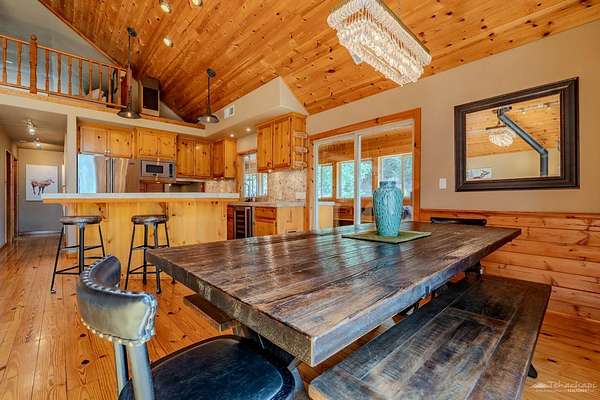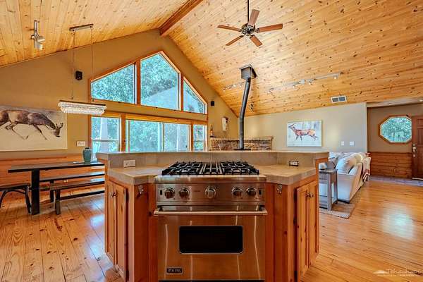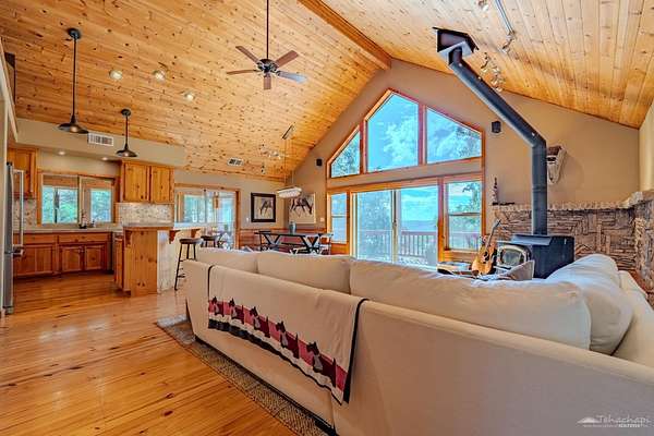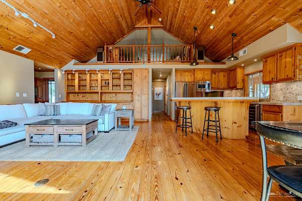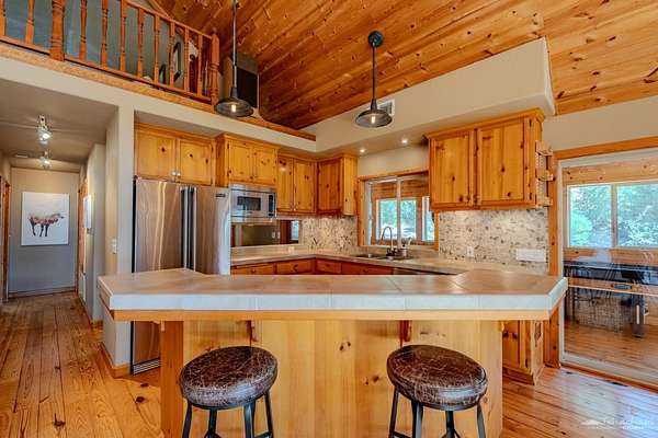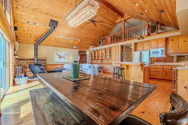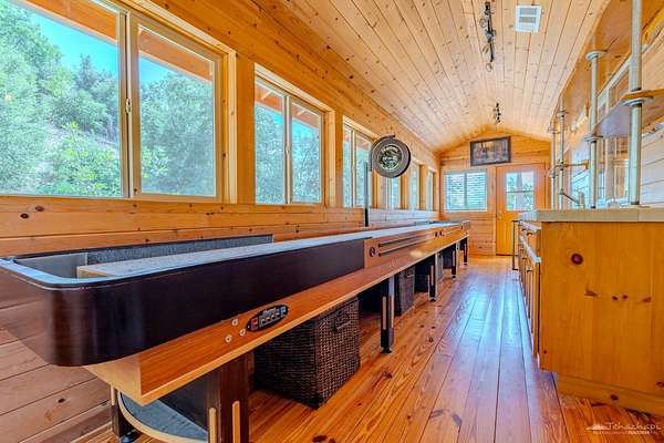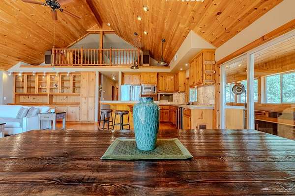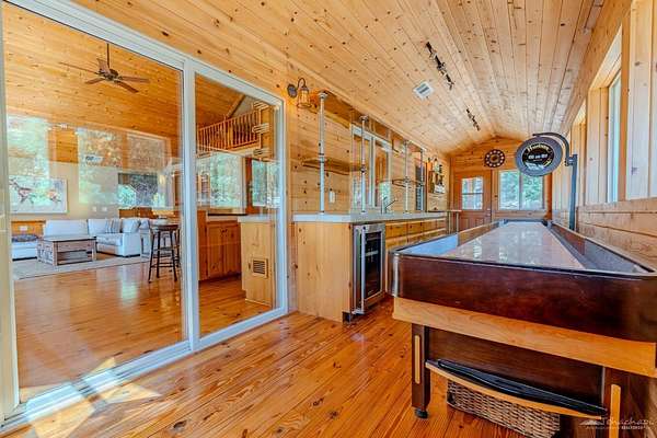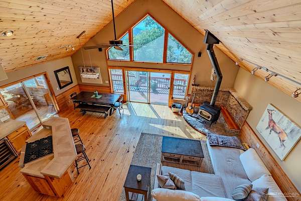 Welcome to your Dream retreat!The attention to detail and quality craftsmanship make this stunning mountain home with an newer metal roof perfect for entertaining. Step inside to an open concept great room with vaulted ceiling, custom wood/glass cabinetry, a wood burning stove, pine hardwood floors, and an abundance of light. The chef's kitchen is well equipped with Viking stainless steel appliances, custom pebble stone back wall and tiled counters. The great room looks up to a loft with an extra sleeping quarters and an area to watch tv, read a book or take the view in. Laundry, pantry is located off the kitchen in its own closet. There is a 240 sq ft sunroom (not included in the square footage) off the dining area that has a hi-end shuffleboard table, a Viking wine fridge, custom sink, cabinetry shelving and tile. The deck is a perfect place to drink coffee, read a book or watch the views. There are two bedrooms including a primary on the main floor. The primary features its own bathroom and a cedar closet for your clothes. Downstairs with direct access off the garage or house is a large game room that has a pool table, sitting area to watch tv and its own ac/heating with a side door to a Astroturf area for your pets. The beautiful custom drapes/blinds are included. The oversized garage has custom wood doors with quiet Marantec garage door openers. It also has a wash tub with hot and cold water and plenty of room for a workshop. The property features cross fending, elderberry trees, two large Tuff sheds, a garage type shed on the other end of the property and a seasonal creek.Don't miss out on the opportunity to own this stunning one of a kind custom built home.Bear Valley Springs is a gated community nestled in the foothills and mountains just west of Tehachapi, California just 2 hours from LA. Recreational offerings for our members and their guests include a Country Club, two Restaurants including fine dining and live entertainment, a state of the art Equestrian Center + 50 miles of equestrian trails, golfing the well maintained par 36 Champion golf course, tennis, swimming, fishing in two well-stocked lakes, a shooting range, archery range, dog park, nature trail, camp grounds, RC airfield, workout facility with a showers, a sauna and spa and so much more! HOA fees are $179 a month.