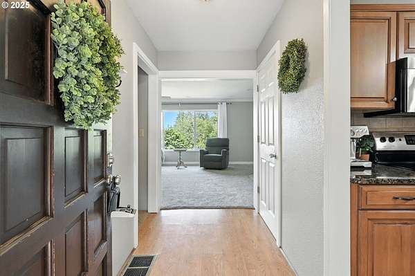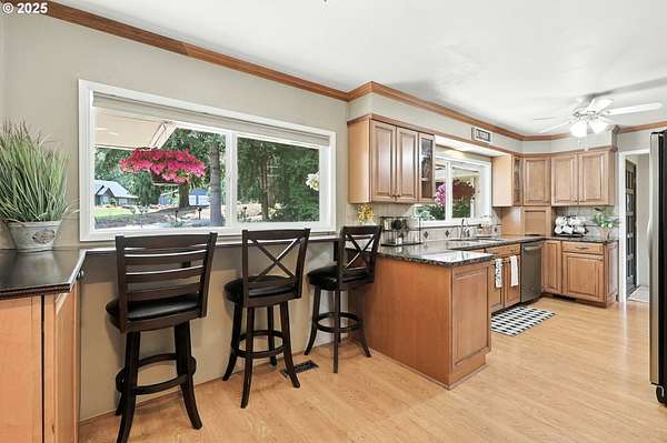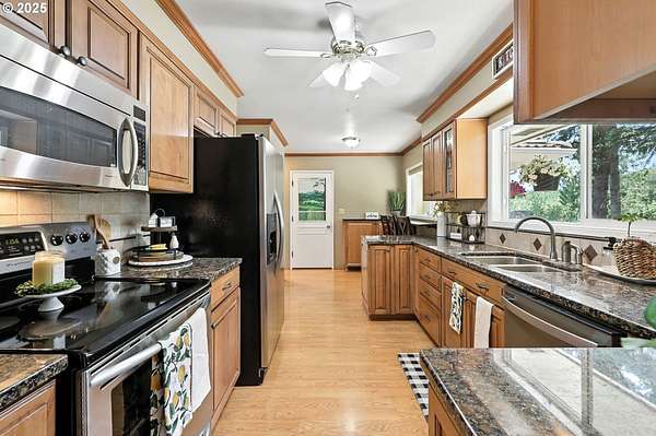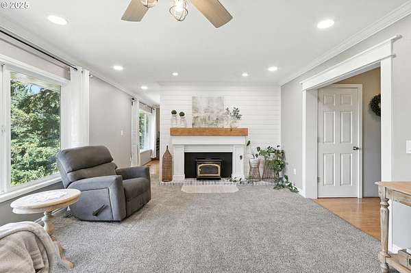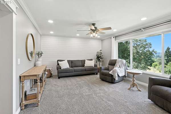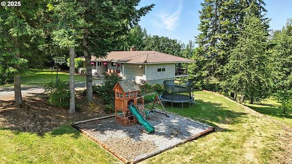 Welcome to this spacious 4-bedroom, 2.5-bathroom daylight ranch, perfectly situated on a gently sloped 4.93-acre lot in the charming town of Estacada, Oregon. This home offers the perfect blend of comfort, functionality, and outdoor potential for those seeking a little more space. The main level features three bedrooms, a large living room with stunning tree views, and a kitchen designed for convenience with an appliance garage and eat bar. The primary suite is located on the lower level with its own separate entrance, offering privacy and flexibility-perfect for multi-generational living or a private retreat. A large bonus room provides endless possibilities for hobbies, activities, or additional living space. Step outside to enjoy the covered porch overlooking the acreage or relax on the covered patio. The expansive lot is ideal for entertaining, gardening, or creating your dream outdoor space. The property also includes a dog run, an outbuilding, and mature fruit trees-four apple, two cherry, and two pear trees-offering both beauty and the opportunity to enjoy fresh, homegrown fruit right from your own yard. Located in Estacada, you'll enjoy the tranquility of small-town living while being close to the beautiful Clackamas River, perfect for fishing, kayaking, and outdoor adventures. Known for its scenic beauty and recreational opportunities, Estacada is a haven for nature enthusiasts.