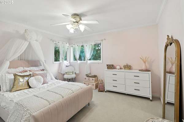 - Ceiling Fan, Laminate Flooring, Laundry, Wainscoting, Wallto Wall Carpet, Washer Dryer