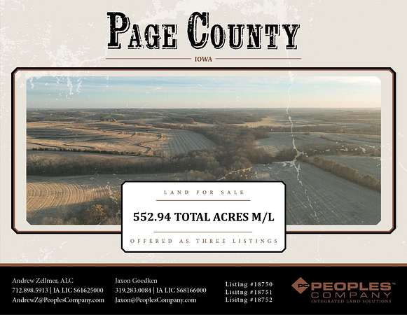 Peoples Company is proud to present the opportunity to own 205.30 m/l acres in Page County, Iowa, located just east of College Springs. This property blends strong agricultural income, long-term investment potential, and great recreational value - a rare combination in today's market.