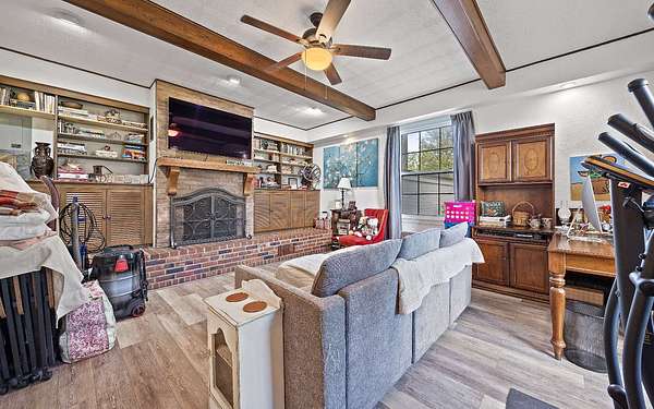 - Ceiling Fans, Fireplace, Storage Area
