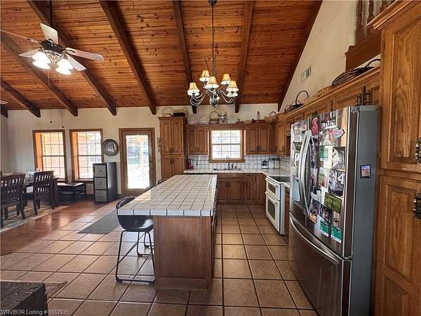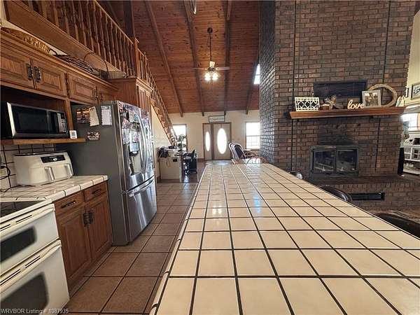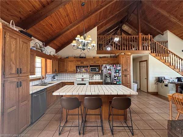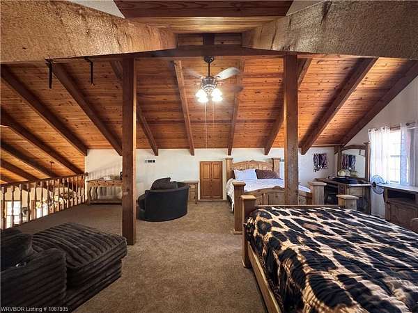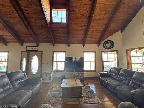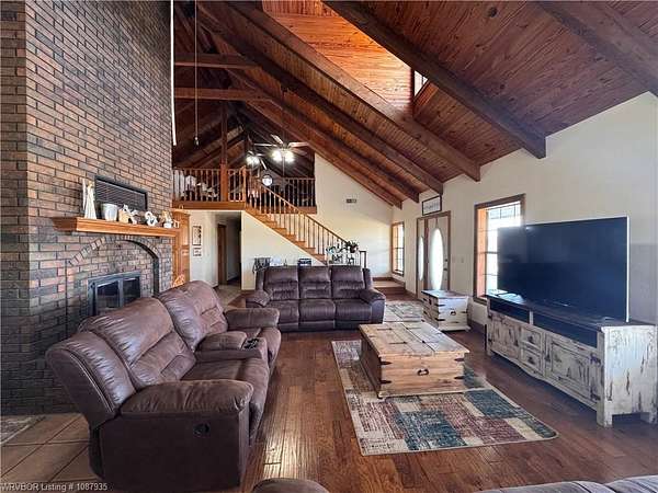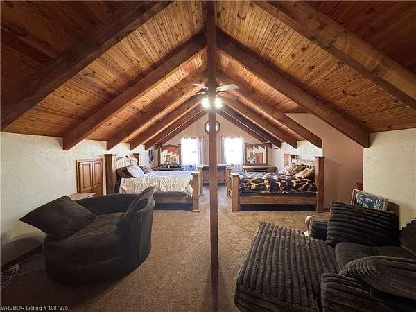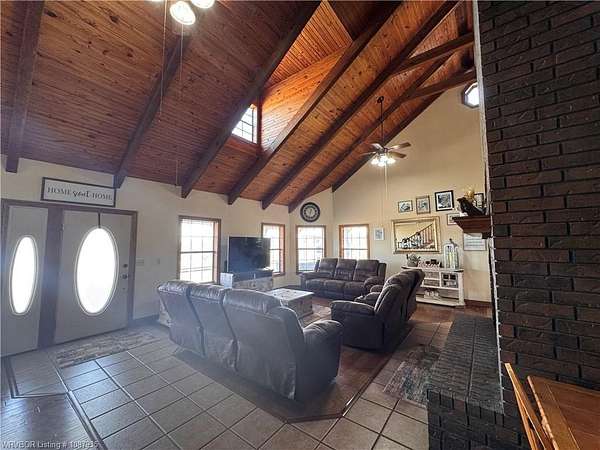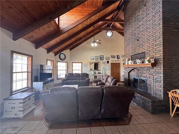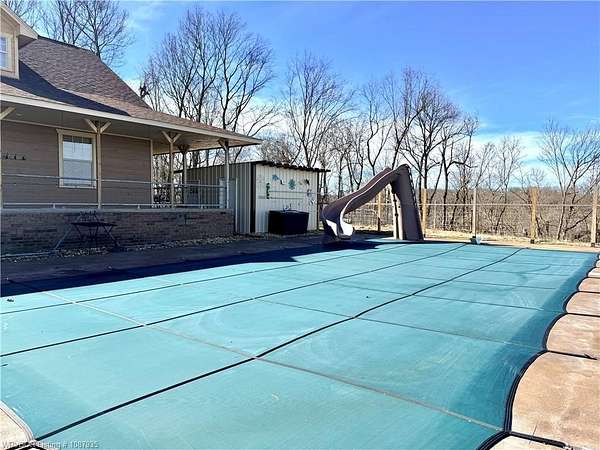 Welcome to your private Ozark retreat where space, versatility, and breathtaking scenery come together. Situated on 13+/- fenced acres with views of the Ozark Mountains, this exceptional property offers three separate living structures, making it ideal for multi-generational living, rental income, guests, or a flexible live/work lifestyle. The primary residence spans 2,520 sq ft and features 3 bedrooms, 2 bathrooms, a spacious loft, a wood-burning fireplace, and an attached garage. A 768 sq ft apartment provides private living quarters with 1,024 sq ft attached garage storage, perfect for extended family, visitors, or income potential. The 36x75 barndominium offers 3 bedrooms, 2.5 bathrooms, and 864 sq ft attached car storage, delivering independence and functionality. Designed for both recreation and productivity, the property includes an in-ground swimming pool, a 50x60 shop building with basketball gym, a stock pond, and ample space for livestock, gardening, hobbies, homeschooling, or a home-based business.