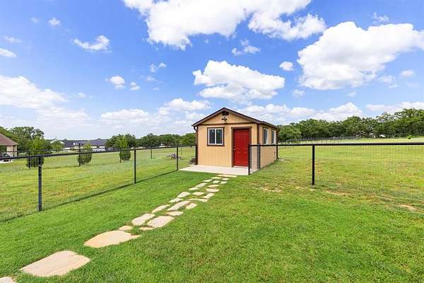 Experience the best of peaceful country living in the highly sought-after Peaster ISD. This beautifully cared-for 4-bedroom, 2.5-bath home sits on a generous 2.5 acres in a quiet, established neighborhood without an HOA. Inside, the layout is designed with versatility in mind. A spacious bonus room offers endless possibilities--use it as a second living area, media space, playroom, or creative studio. The formal dining room is perfect for family gatherings and holiday meals, while the warm, wood-burning fireplace creates a cozy centerpiece for relaxing evenings at home. The outdoor features are just as impressive. Step out onto the covered back porch overlooking a wide, pipe-fenced yard--ideal for pets, kids, or simply soaking in the open views. If you need room for projects, business, or equipment, you'll love the 22x35 workshop complete with electricity, a 1,300-lb electric hoist, and a 50-amp RV plug, plus a 13x40 attached covered storage area perfect for RVs, trailers, or large vehicles. For those wanting a private workspace, home gym, or studio, the property also includes a detached 12x18 office building fully heated and cooled for year-round comfort. Homes like this--offering space, functionality, and lifestyle freedom--don't come around often. Enjoy the quiet of country life while staying conveniently close to town amenities. Whether you're expanding, working from home, or simply craving room to breathe, 301 Aviara Ct delivers it all. Txt Keyword Rodeo4 to 88000 for a full walk-through video!