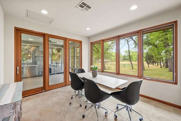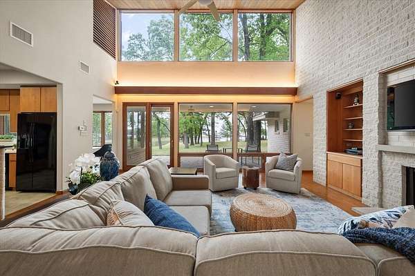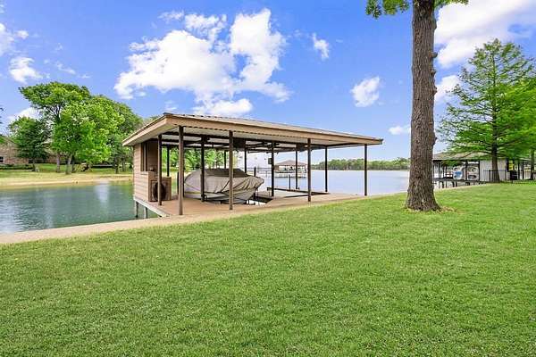 A rare opportunity to own a meticulously designed, energy-efficient lake home with unmatched views, premium construction, and exceptional outdoor living spaces. Experience elevated lakefront living in this stunning contemporary modern home located in the gorgeous Hidden Oaks subdivision on Richland Chambers Lake. Situated on over 1.5 acres with mature trees and 180 ft of shoreline, this exceptional waterfront property offers privacy, space, and breathtaking views from nearly every room. Designed to maximize the setting, walls of windows surround the home and flood the interior with natural light while perfectly framing the lake. The spacious living area features a cozy fireplace and seamlessly flows into the dining and kitchen spaces—ideal for entertaining or simply enjoying the peaceful water views. This thoughtfully designed home offers 3 bedrooms and 2.5 bathrooms, including a primary suite with spa-like features, steam shower, tub and walk-in closet with built-ins. Breakfast area with stunning lake views, formal dining, gorgeous entry way, built-ins in every bedroom, office space for dedicated working area are just a few of the incredible interior features. Built with quality and efficiency in mind, the home includes energy-efficient systems such as all new HVAC, spray foam insulation, and triple-pane windows. Outdoor living is just as impressive, with a large covered patio and an enclosed secondary patio complete with a second kitchen area—perfect for grilling, hosting, and gathering in any season. The property also features a retaining wall and a protected cove setting, enhancing both usability and shoreline stability. Enjoy direct access to the water with a private 2-slip boathouse, offering security and convenience for your boat and lake toys. Additional highlights include a steel studs & frame structure in house, standing seam metal roof, central vacuum system, whole house fan system, built-ins, 3-car garage, and extensive storage throughout.